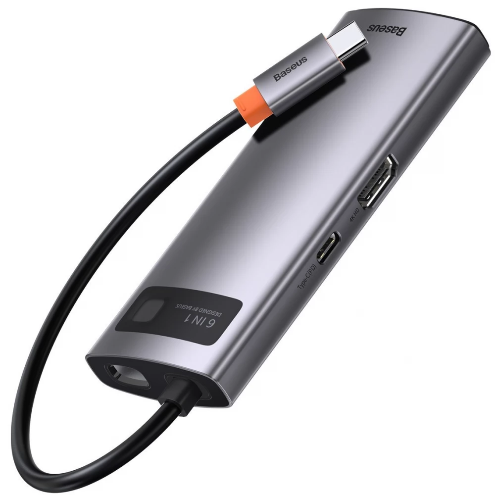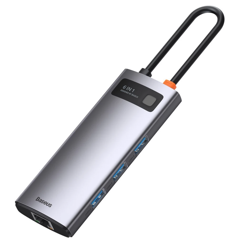 BASEUS Metal Gleam Series 6 az 1-ben hub USB-C - 3x USB 3.0 + HDMI + USB-C PD + Ethernet RJ45