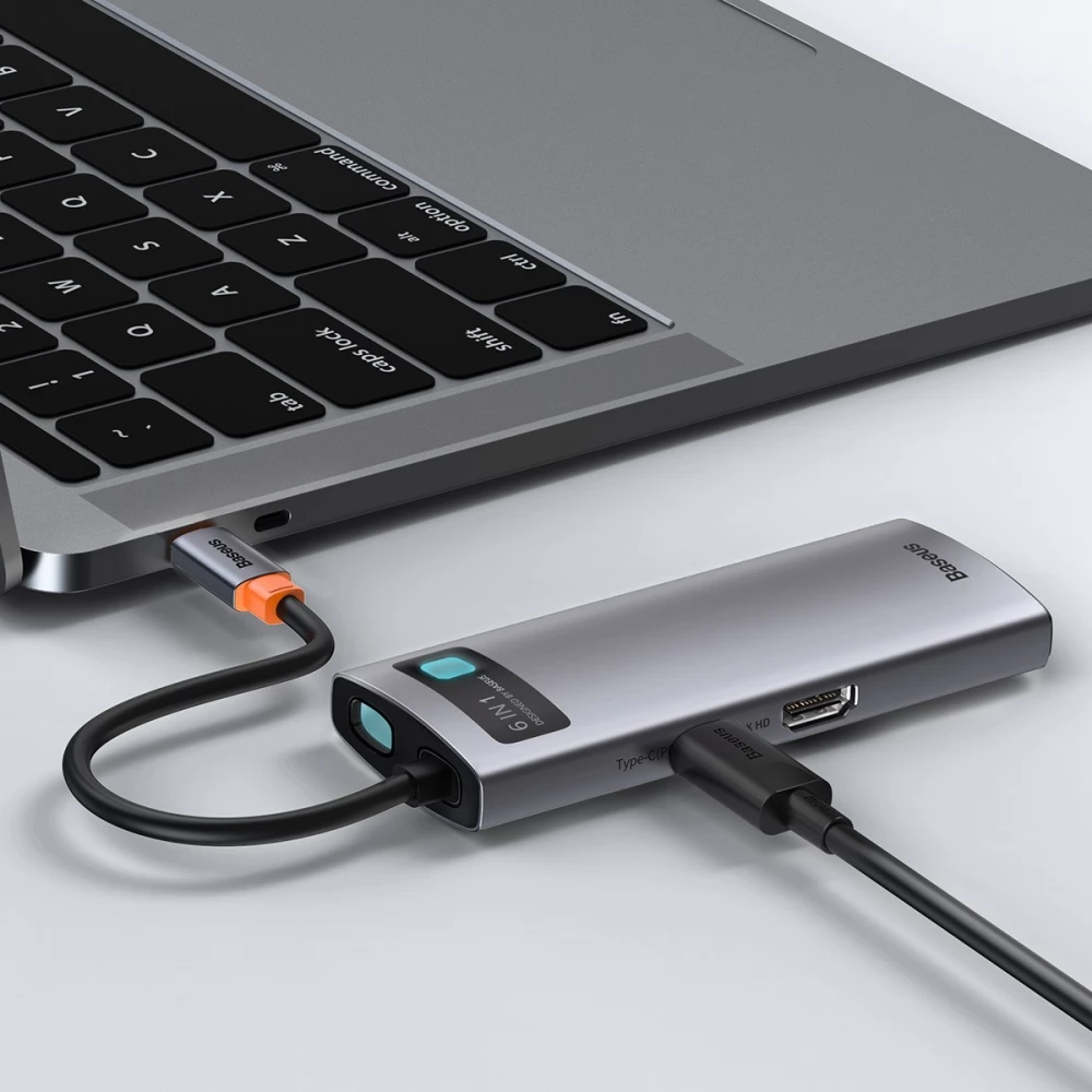 A BASEUS Metal Gleam Series 6 az 1-ben hub USB-C csatlakozóval bővíti notebookja lehetőségeit. Három USB 3.0 port, HDMI kimenet, USB-C PD...
