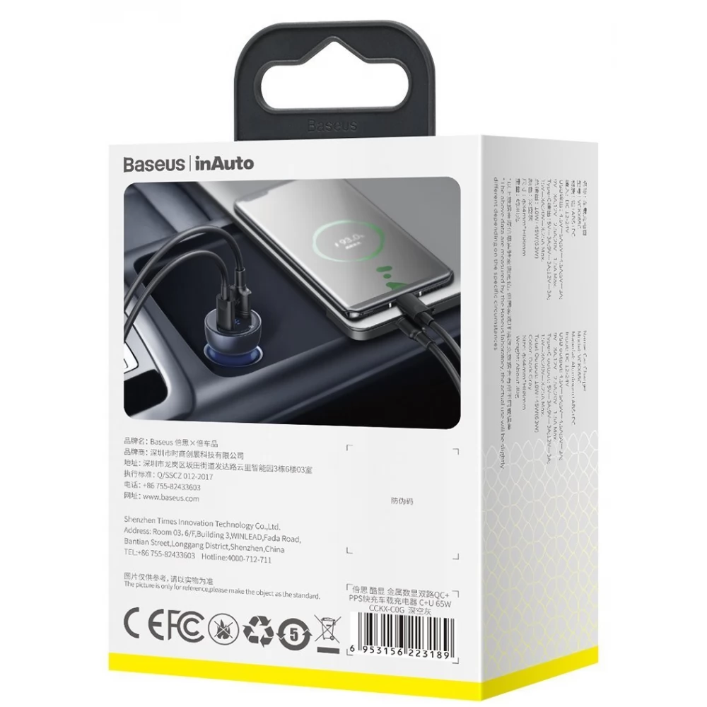 BASEUS Particular Autós töltő 65W szürke