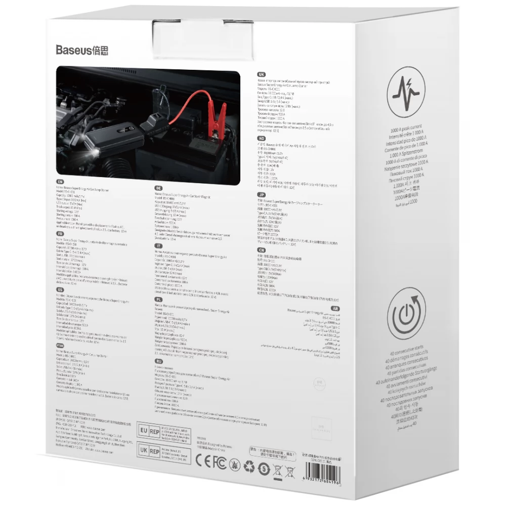 - A Baseus Super Energy Air Car Jump Starter szinte bármilyen autó akkumulátorát képes maximum 40-szer is beindítani egyetlen töltéssel
