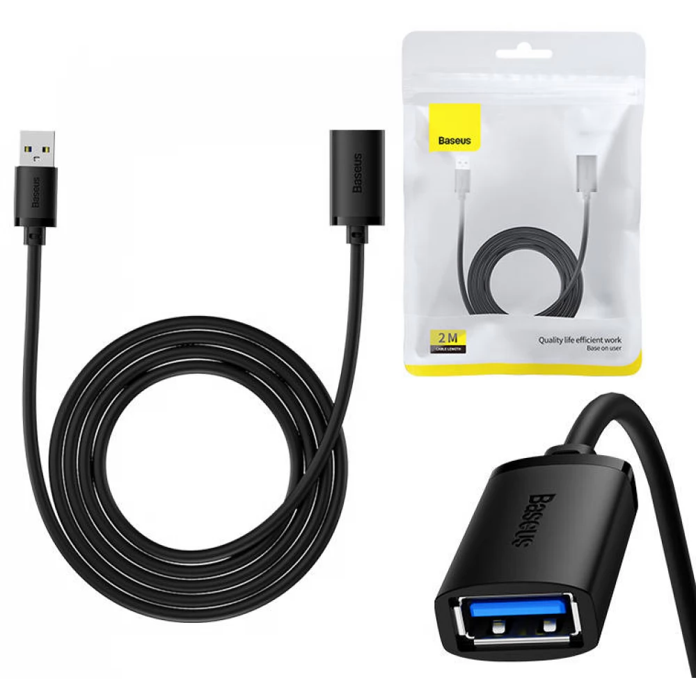 Fekete színű, 2m hosszú USB 3.0 - USB 3.0 Hosszabbító kábel.