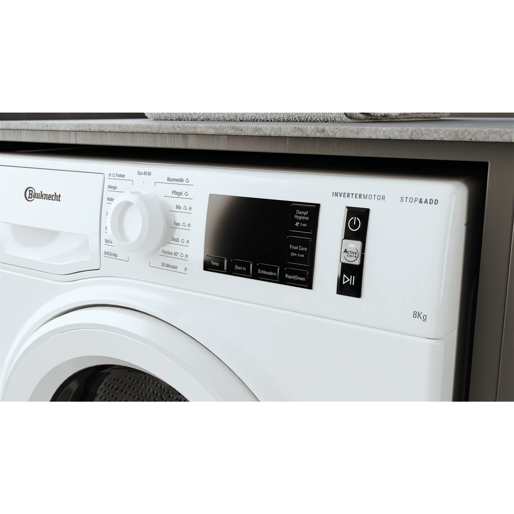 A Bauknecht elöltöltős mosógép WM 811A maximális centrifugálási sebessége 1400 ford./perc, és 8 kg ruhanemű fér bele. A számos mosási programmal és kiegészítő funkcióval semmi sem hagy kívánnivalót maga után. A Steam Refresh opció mindössze 20 perc alatt eltávolítja a kellemetlen szagokat, és gőzzel ellazítja a szálakat. A Woolmark tanúsítvánnyal rendelkező gyapjúprogramnak köszönhetően a finom gyapjúruházatot nagyon kíméletesen mosod. Az antiallergén program csökkenti a leggyakoribb allergéneket is, mint például a pollen, az atkák és az állati szőr. A WM 811A kezelése gyerekjáték az áttekinthető kijelzőnek, az érintőgomboknak és a forgatógombnak köszönhetően. Ha a biztonságról van szó, a WM 811A gyermekzárral és többszörös vízvédelemmel+ ragyog.