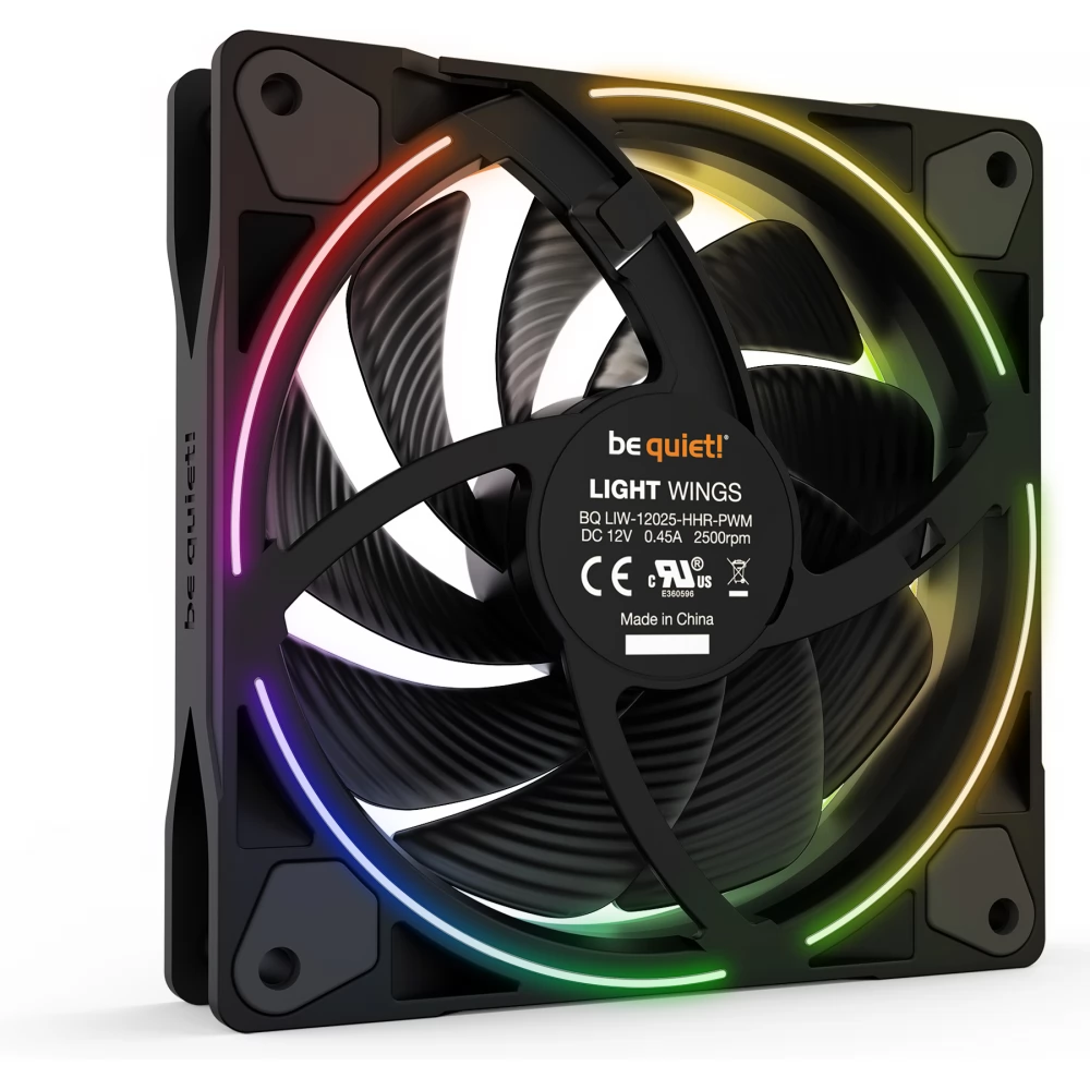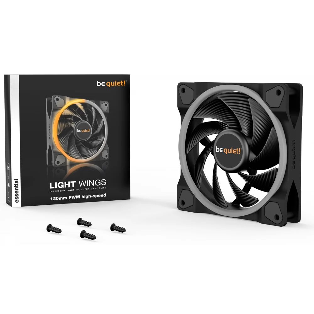 A különlegesen optimalizált forgólapátoknak köszönhető az a csendes működés, amiről a be quiet! híres. A maximális ventilátorsebesség melletti 31 dB-es zajszint is mutatja, hogy a világítás megléte nem válik semminek a kárára, hanem hozzáadott értéket jelent a csendes és nagyon hatékony működés mellett. A Light Wings 120 mm PWM high-speed ventilátor tulajdonságainak köszönhetően csendes, panorámás házakba és gamer rendszerekbe egyaránt a legjobb választás.