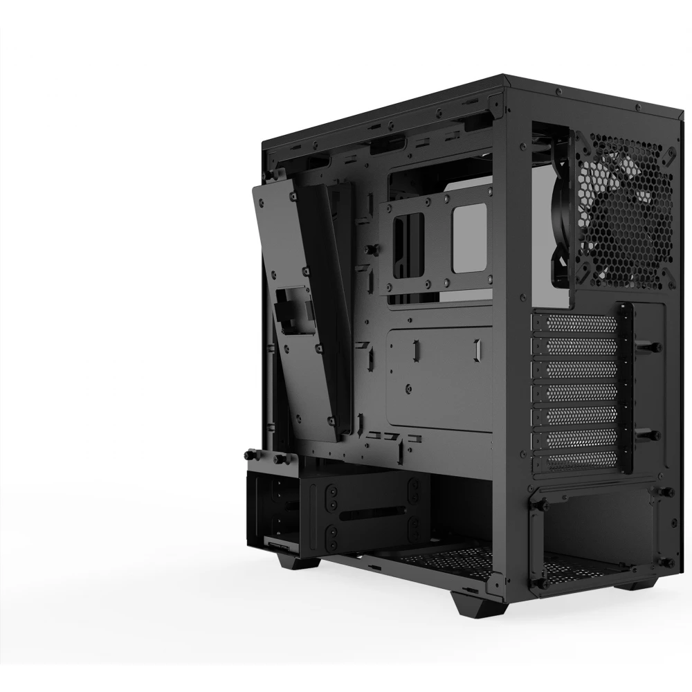 A kiváló minőségű, teljes üveg oldallap belátást enged a PC belsejébe az alkatrészekre. Az ablak edzett, színezett üvegből készül, feketére festett szegélyekkel.