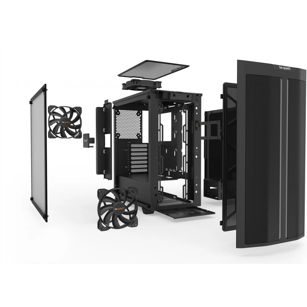 A három, gyárilag beépített Pure Wings 2 ventilátor légszállításra optimalizált lapátokkal biztosítja a tökéletes légáramlást és hűtést. A kompakt házkialalítás ellenére az első, a felső és a hátsó ventilátor is 140 mm-es, így nagyon csendes működésű. Akár további két, 140 mm-es ventilátor is beépíthető.