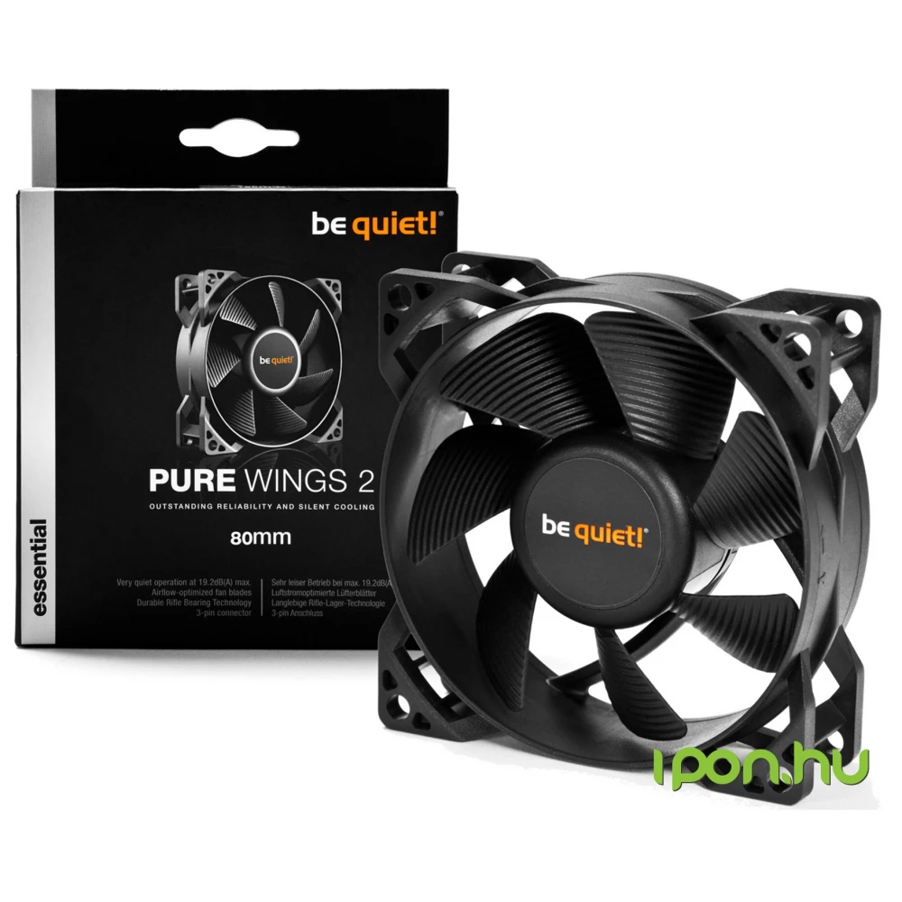 A BE QUIET! Pure Wings 2 80mm hűtőventilátor azok számára készült, akik nem hajlandóak kompromisszumokat kötni a minőség és a teljesítmény között. Halkan és hatékonyan működik, ami tökéletes választás csendes otthoni és irodai PC-khez, valamint játék- és multimédiás rendszerekhez is alkalmas. Könnyen beszerelhető és kompatibilis a legtöbb PC házzal.