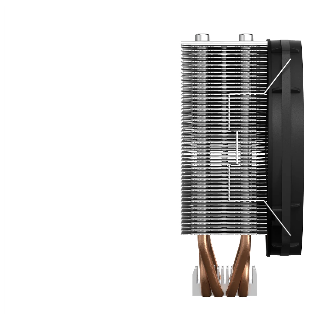 A Shadow Rock Slim 2 hűtőt alumíniumsapkákkal lezárt, 6 mm-es hőcsövekkel szerelik. Ez a nagyszerű hűtőteljesítmény kulcsa, mert a csövek hatékonyan továbbítják a hőt a hűtőbordák megfelelő területére.