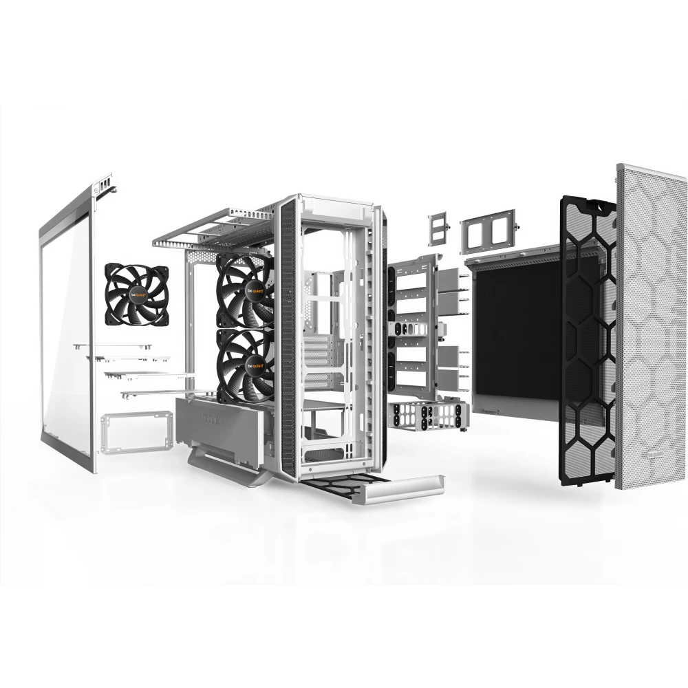 A három előre telepített Pure Wings 2 140 mm-es ventilátor légszállításra optimalizált lapátjai tökéletes légáramlást és biztos hűtést biztosítanak, erős szellőzésű vagy csendre optimalizált konfiguráció esetén is.