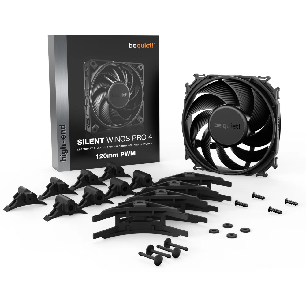 A Silent Wings Pro 4 120mm PWM a be quiet! legmodernebb, legnagyobb teljesítményű és legsokoldalúbb ventilátora.