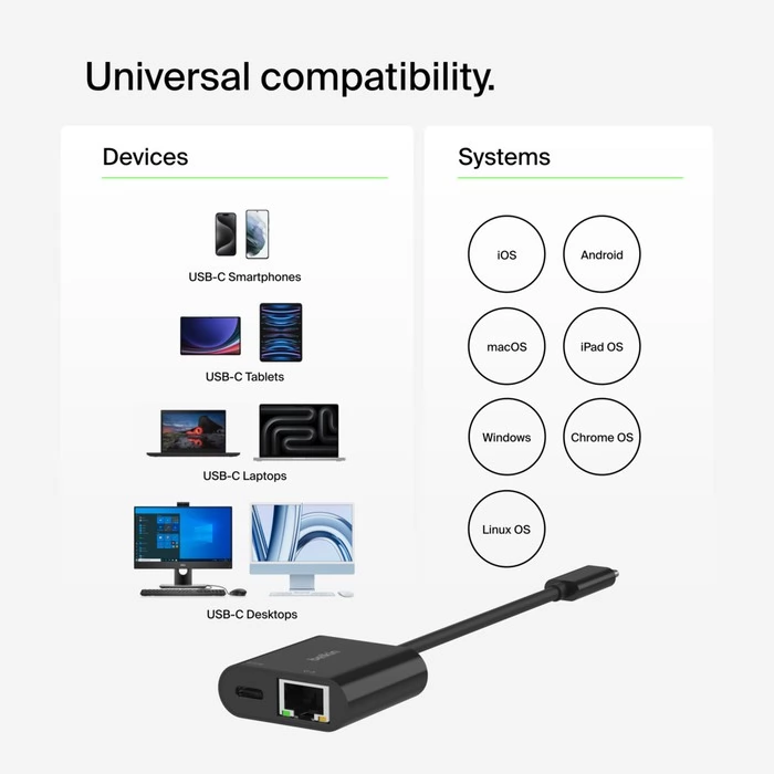 BELKIN INC019btBK USB-C to Ethernet + Charge Adapter 100W