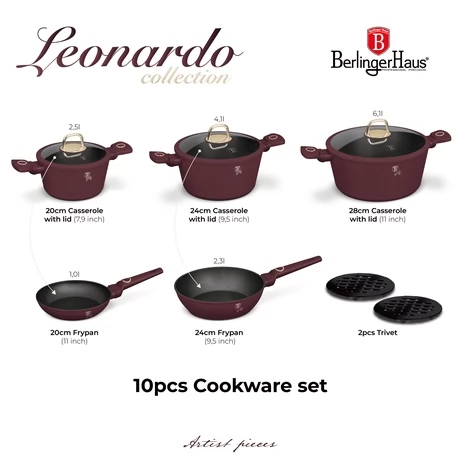BERLINGER HAUS BH/8050 Edénykészlet 10 részes Matt bordó