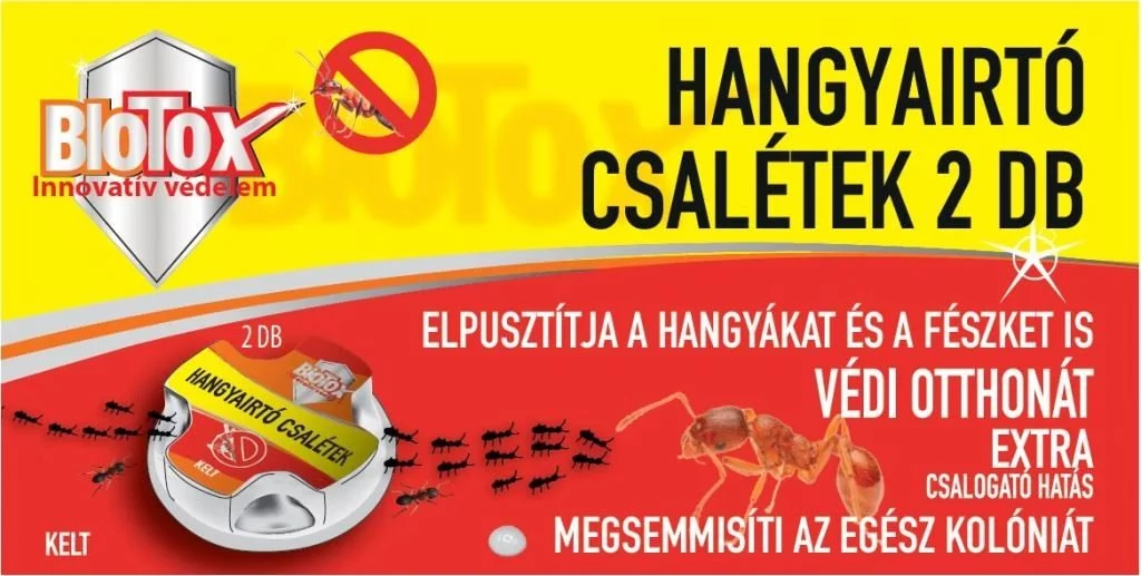 A Biotox hangyairtó csalétek lehetővé teszi a rovarirtószer tiszta használatát. A dobozban lévő gél nem folyik és nem csöpög ki. A csalétekdoboz nyílásának alakját, méretét és számát úgy tervezték meg, hogy megkönnyítsék a hangyák áthaladását. A gél hosszú ideig ízletes marad, biztosítva hatékonyságát az aktiválástól számított 3 hónapig. Várhatóan az alkalmazástól számított két héten belül megsemmisül az egész fészek.