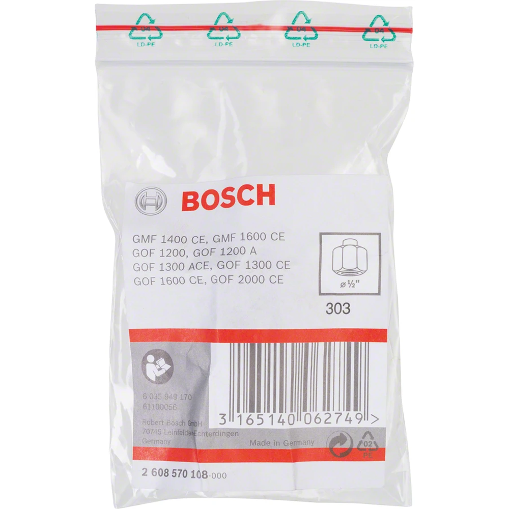 A Bosch befogópatron professzionális megoldást kínál marógépekhez. Az 1/2 hüvelykes átmérőjű patron precíz és biztonságos befogást garantál a különböző marófejek számára.