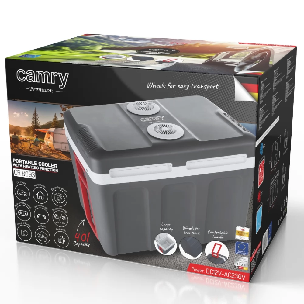 - Teljesítményválasztó: falszigetelés vastagsága 25-30mm állandó hőmérséklet a hűtőkamrában 18-22°C alacsonyabb / magasabb, mint a környezeti hőmérséklet kényelmes, csuklós fedél kerekek a könnyű szállításhoz kényelmes fogantyú esztétikus teljesítmény kábelek a hűtő csatlakoztatásához a DC 12V-os szivargyújtó aljzathoz az autóban és a 230V-os - AC aljzathoz mellékelve AC 220-240V ~ 50/60Hz tápegység Fűtési teljesítmény 52W / hűtés 58W DC 12V-os tápegység Fűtési teljesítmény 40W / hűtés 48W Méretek: belső 45 * 30. 4 * 30cm