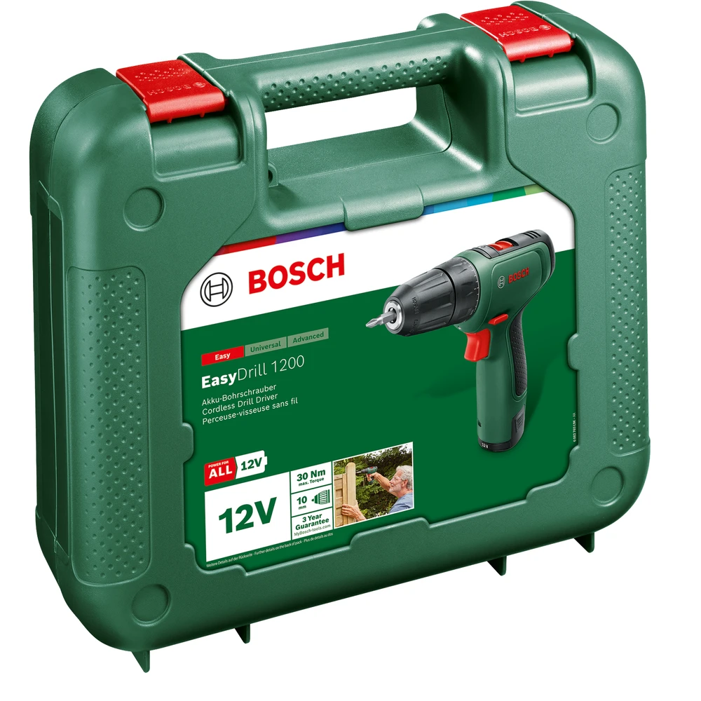 BOSCH EasyDrill 1200 Akkus kétfokozatú fúrócsavarozó + 2 x 1.5Ah akku + bitfej készlet