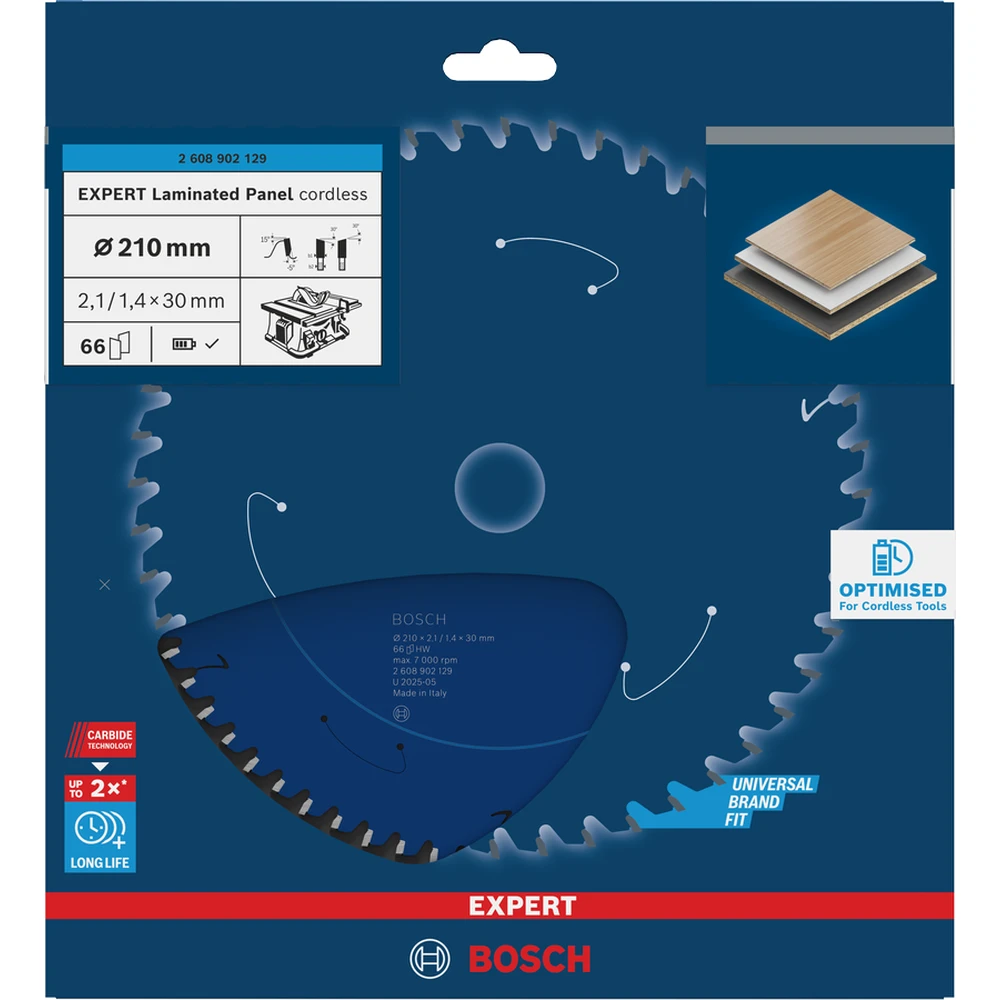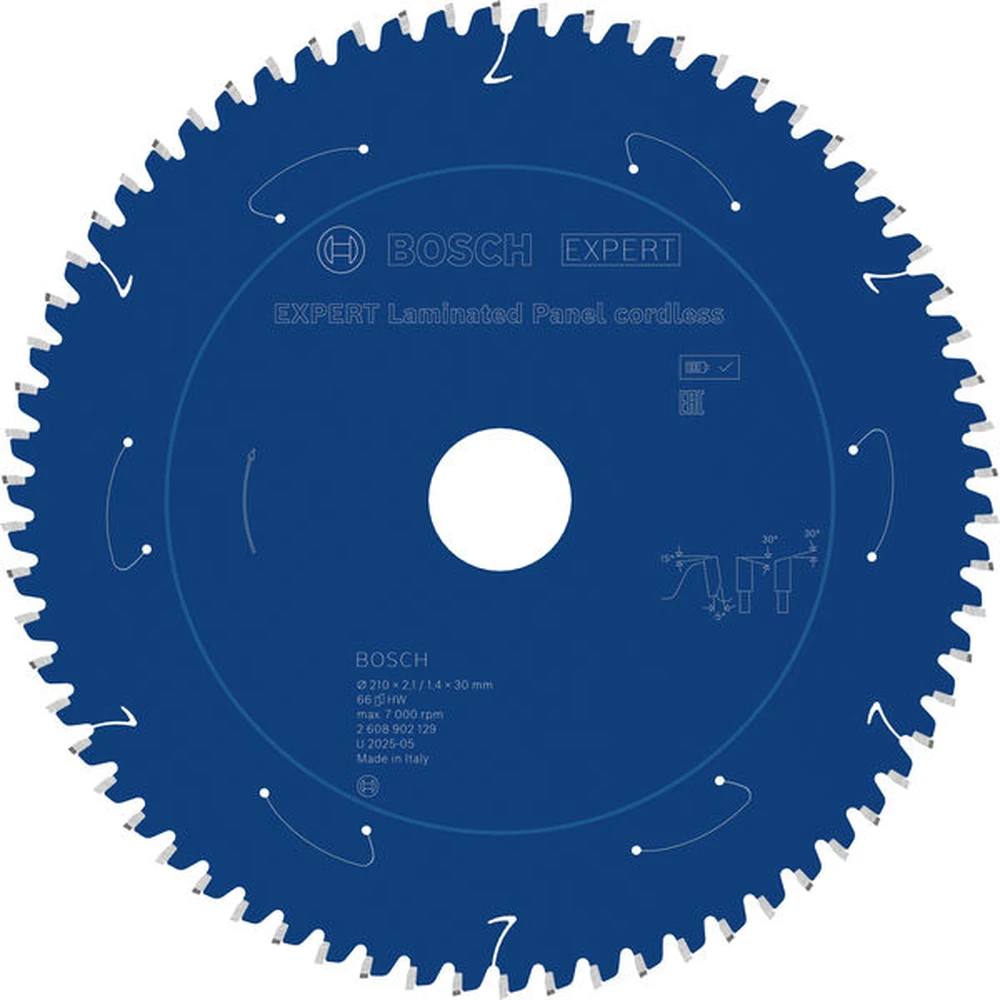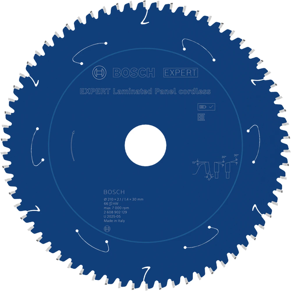 A Bosch EXPERT Laminated körfűrészlap kifejezetten laminált anyagok precíz vágására kifejlesztett professzionális szerszám. A 210 mm átmérőjű fűrészlap 30 mm-es furat befogással és 66 fogazattal rendelkezik, ami biztosítja a tiszta, pattogásmentes vágást.