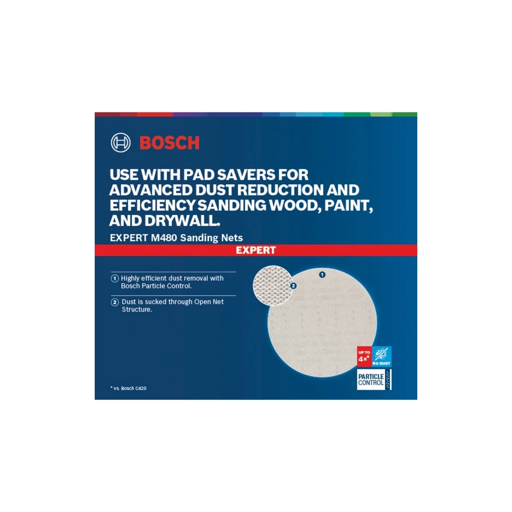 A Bosch Expert M480 csiszolólap innovatív háló szerkezetű kialakítással rendelkezik, amely forradalmasítja a csiszolási folyamatot. A nyitott hálós struktúra akár 4-szer hatékonyabb porelszívást biztosít a hagyományos csiszolópapírokhoz képest, így gyakorlatilag portalan munkavégzést tesz lehetővé.