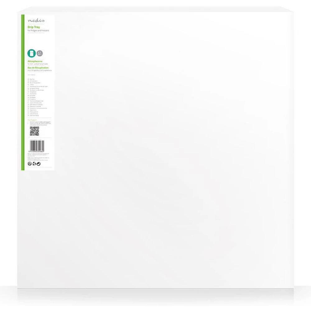4. Távolítsa el a védőfóliát, és a tálcát nyomja erősen a padlóra. Most óvatosan tolja rá a hűtőszekrényt a tálcára.