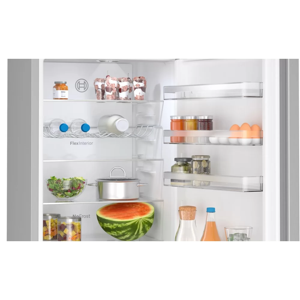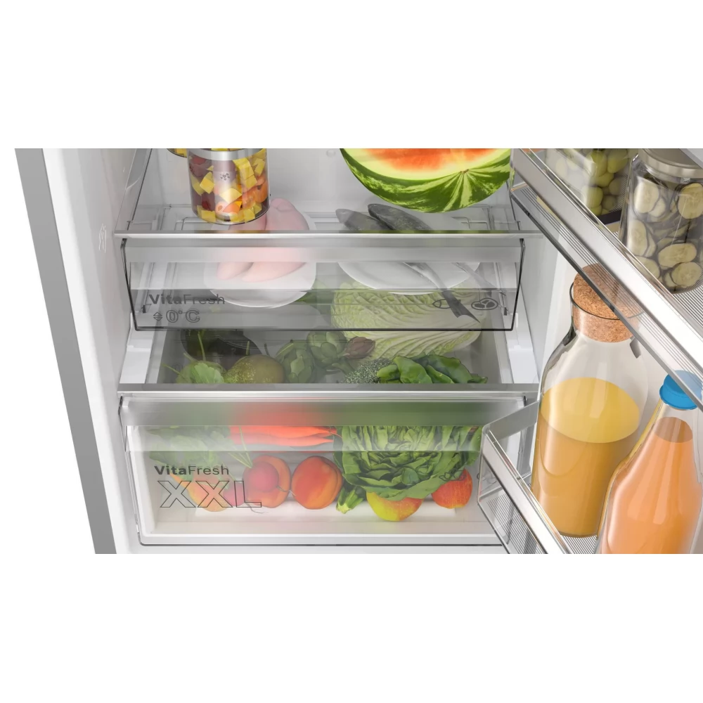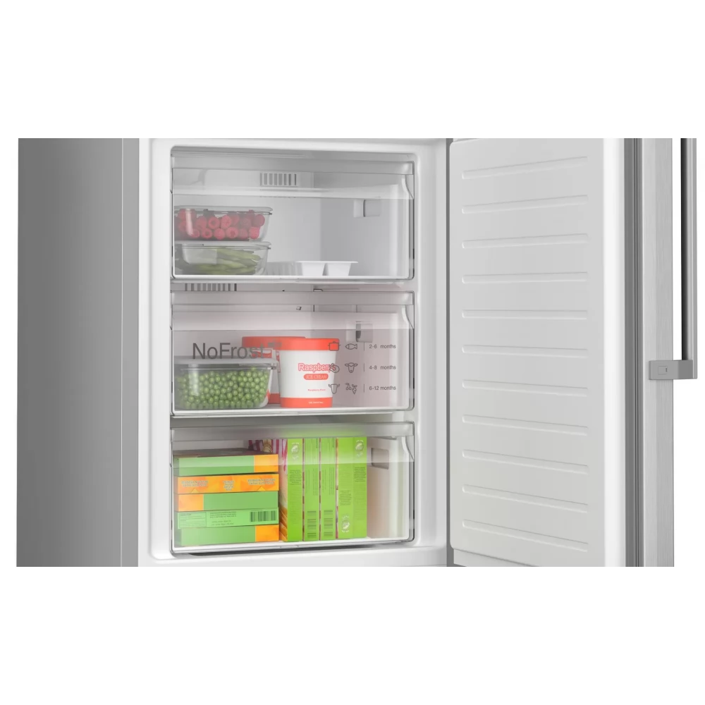 BOSCH KGN39VLCT Serie 4 hűtő-fagyasztószekrény szabadonálló alulfagyasztós 203 x 60 cm nemesacél kinézet