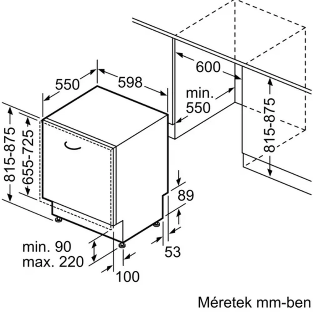 - Beépítéshez szükséges minimális szélesség: 600 mm