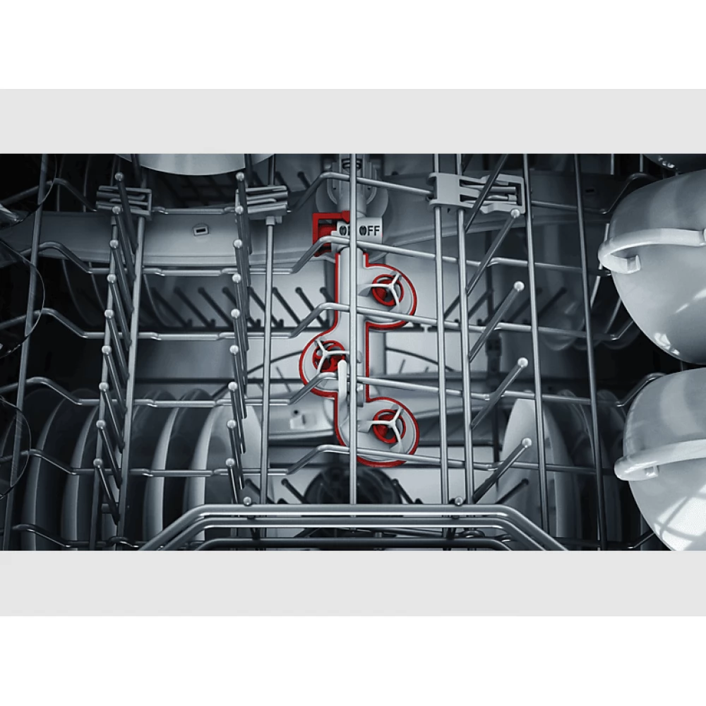Ez az innovatív mosogatási technológia növeli a hatékonyságot, és biztosítja a környezetbarát mosogatást a tökéletes tisztítási eredmény érdekében. A készülék vizet és energiát takarít meg a víz célzott eloszlása, az optimalizált szűrőtechnológia, a gyorsabb felfűtés és a nagyobb szivattyúteljesítmény révén, a megnövekedett vízáramlás érdekében.