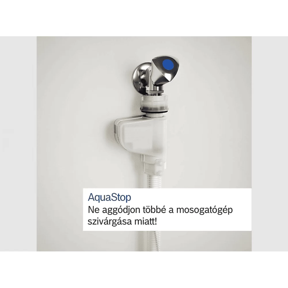 A vízkár elleni védelem elengedhetetlen a mosogatógépeknél. Aqua Stop rendszerünk megbízható vízszivárgás elleni védelmet nyújt. Ha a szenzor szivárgást érzékel, a mosogatógép automatikusan leáll és a duplafalú csövön keresztül kiszivattyúzza a gépből a vizet. Az AquaStop megvédi Önt a vízkártól - sőt, ez a garancia a készülék élettartamára szól.