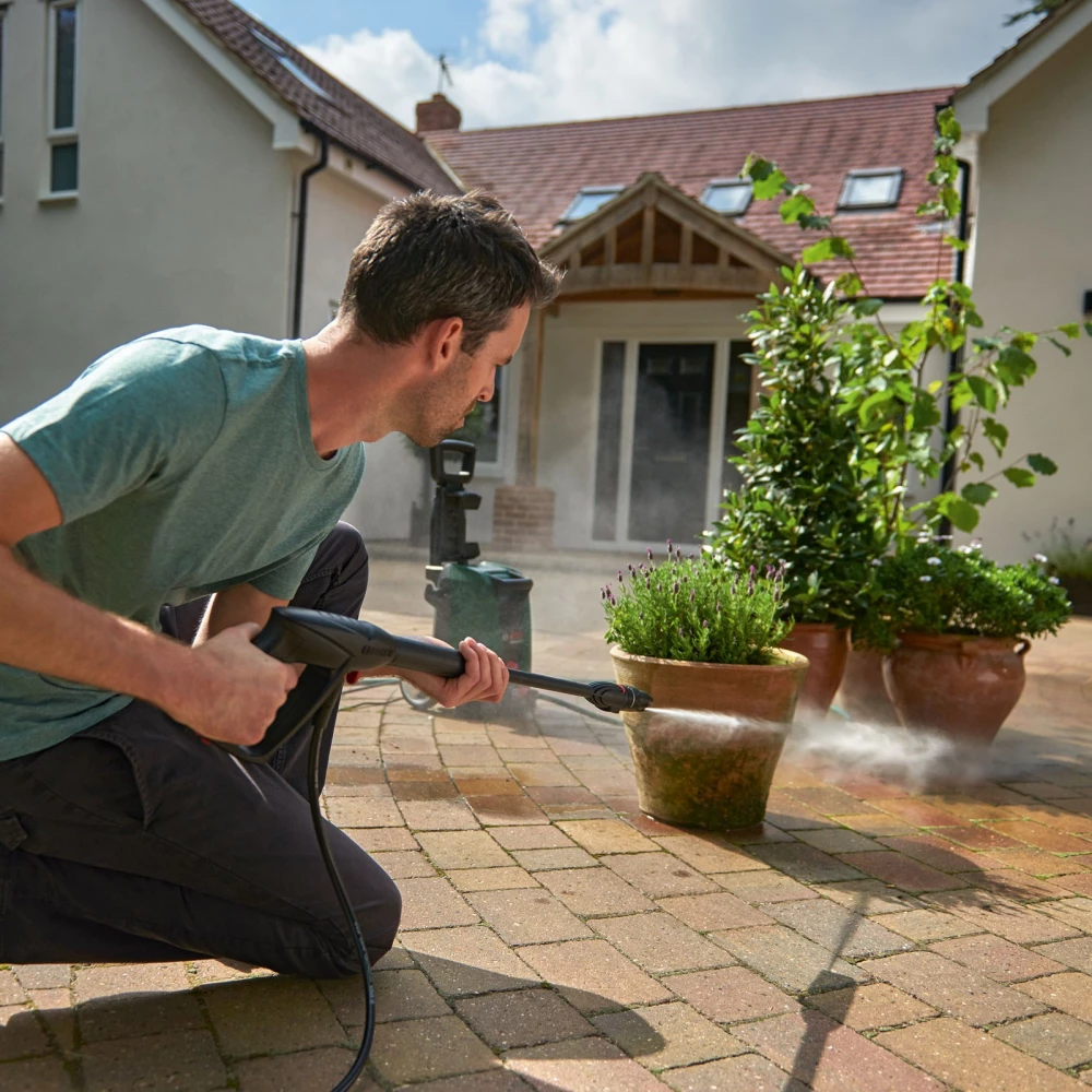 - A 450 ml-es, magasnyomású tisztítószer-fúvóka felgyorsítja a munkát a szappan gyors adagolásával