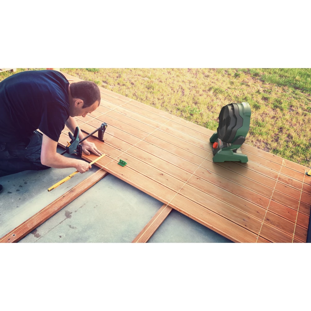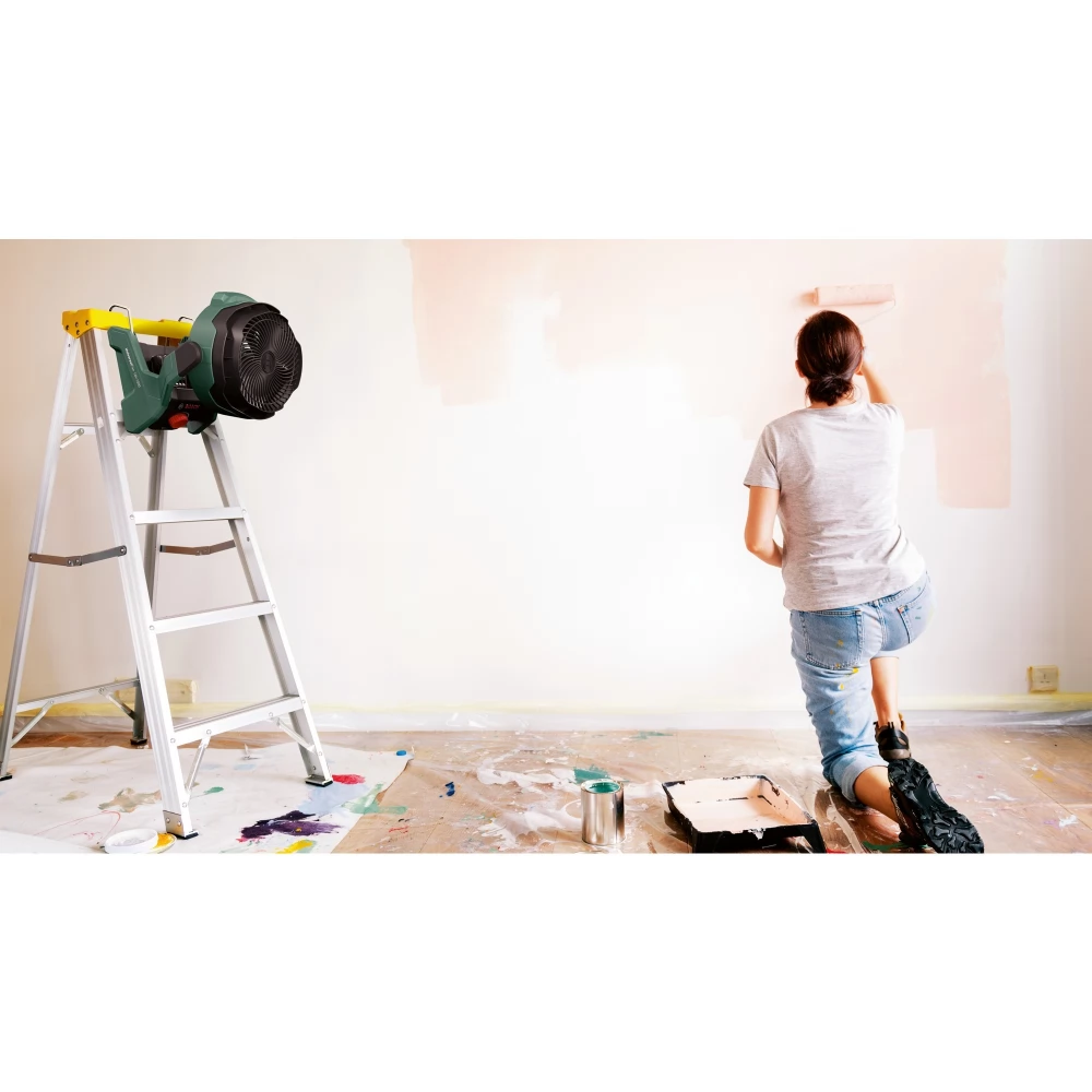 A Bosch vadonatúj, vezeték nélküli UniversalFan 18V-1000 készülékét úgy tervezték, hogy megfeleljen a barkácsolók speciális igényeinek. Kis súlyú, kompakt és robusztus, miközben az innovatív Bosch JetBreeze Airflow technológia erőteljes, koncentrált légáramot generál, kiváló üzemidő és kényelmes, alacsony működési zaj mellett. A ventilátor fordulatszáma fokozatmentesen állítható, és az Állandó teljesítmény funkció segítségével az akkumulátor üzemideje alatt mindvégig azonos szinten tartható. Élvezze a maximális sokoldalúságot: a többféle felakasztási és rögzítési lehetőségnek köszönhetően, a kampók, a kulcslyuk akasztó és a háromlábú állvány segítségével a ventilátor szinte bárhol használható. A légáramlás iránya a ventilátorfej 180°-os megdöntésével szabályozható, így a légáram pontosan oda irányítható, ahol arra szükség van. Hatékony működésre tervezve: a UniversalFan 18V-1000 az EU-ban készül, a termék burkolata 80%-ban újrahasznosított anyagokat tartalmaz. A beépített Bosch Syneon Electronic védi a szerszámot és az akkumulátort. Ez a szerszám a POWER FOR ALL ALLIANCE rendszer része. Egyetlen akkumulátorral nagyszámú, különböző márkájú szerszám működtethető.
