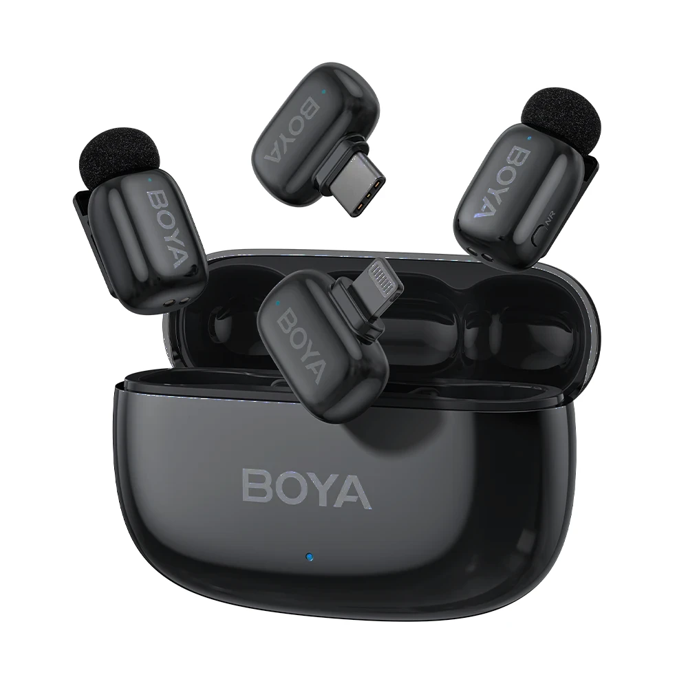 BOYA Mini 2 - 2 adó + 2 vevő (USB-C és Lightning) + 1 töltőtok fekete