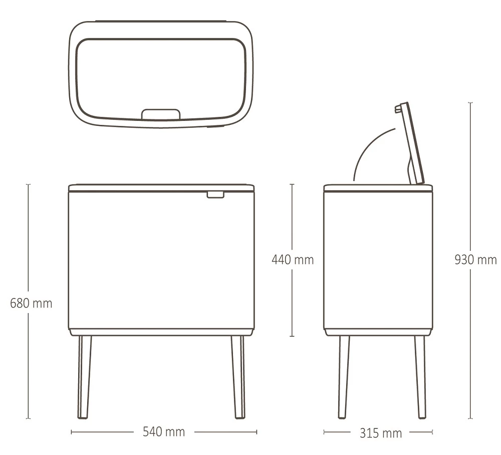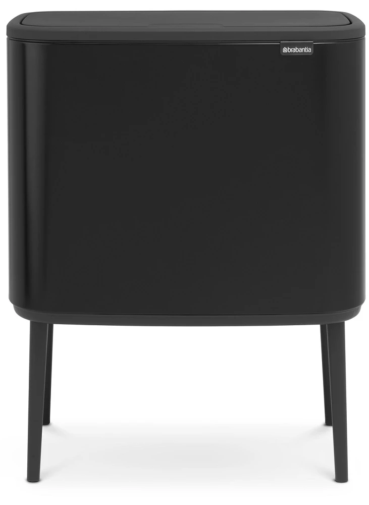 Brabantia Bo Touch Bin nyomófedeles szelektív hulladékgyűjtő, magasított, lábakon álló, műanyag tartály, 11+23L - X+J méret, acél, matt fekete - 316203