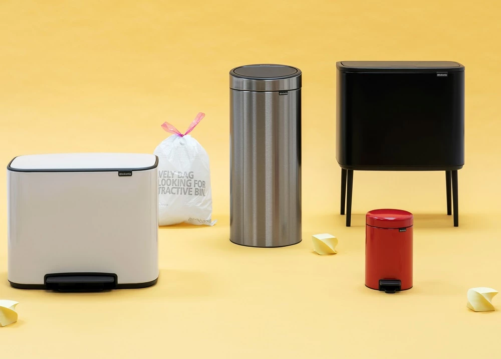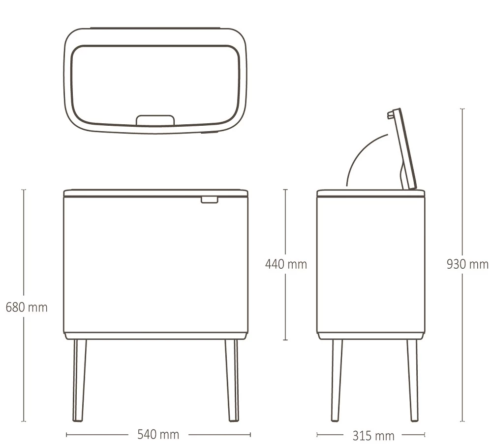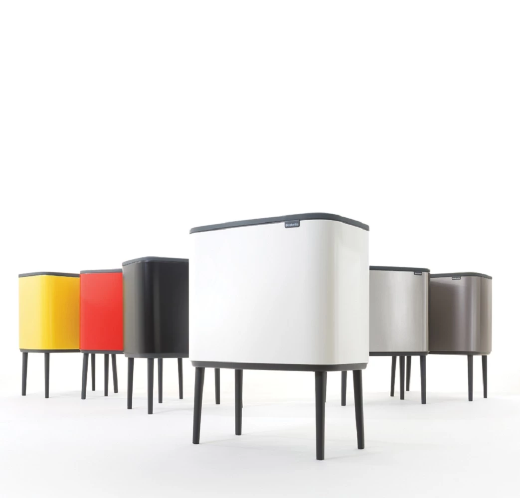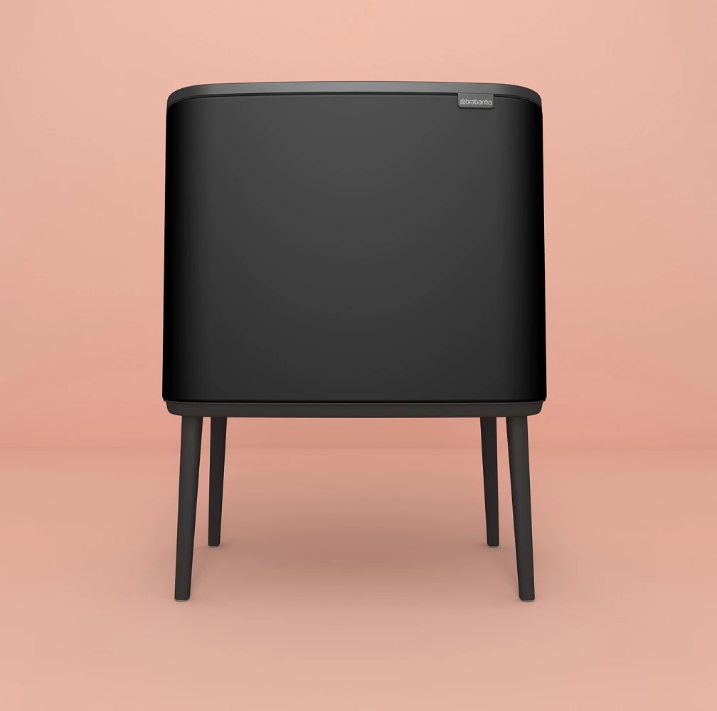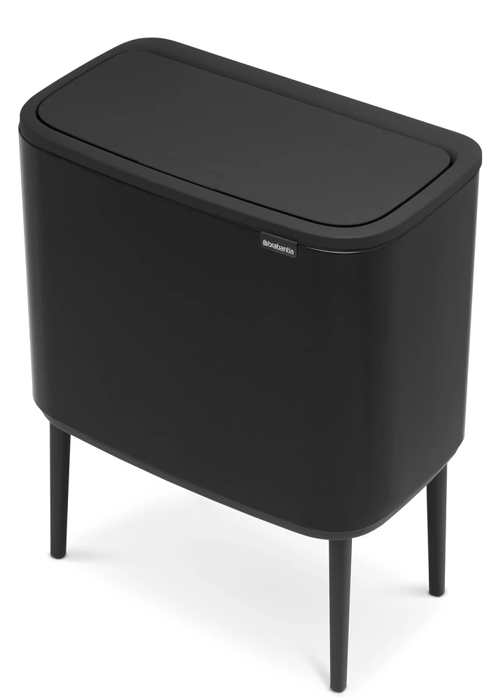 Brabantia Bo Touch Bin nyomófedeles szelektív hulladékgyűjtő, magasított, lábakon álló, műanyag tartály, 3x11L - X méret, acél, matt fekete - 316067