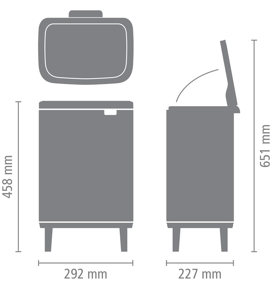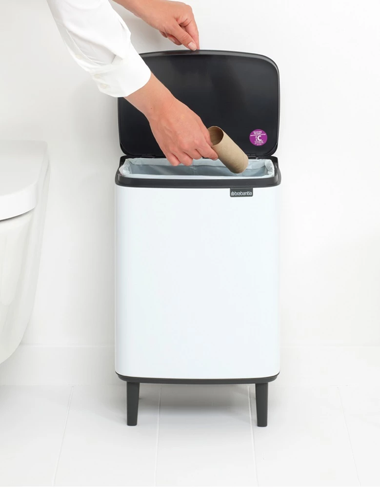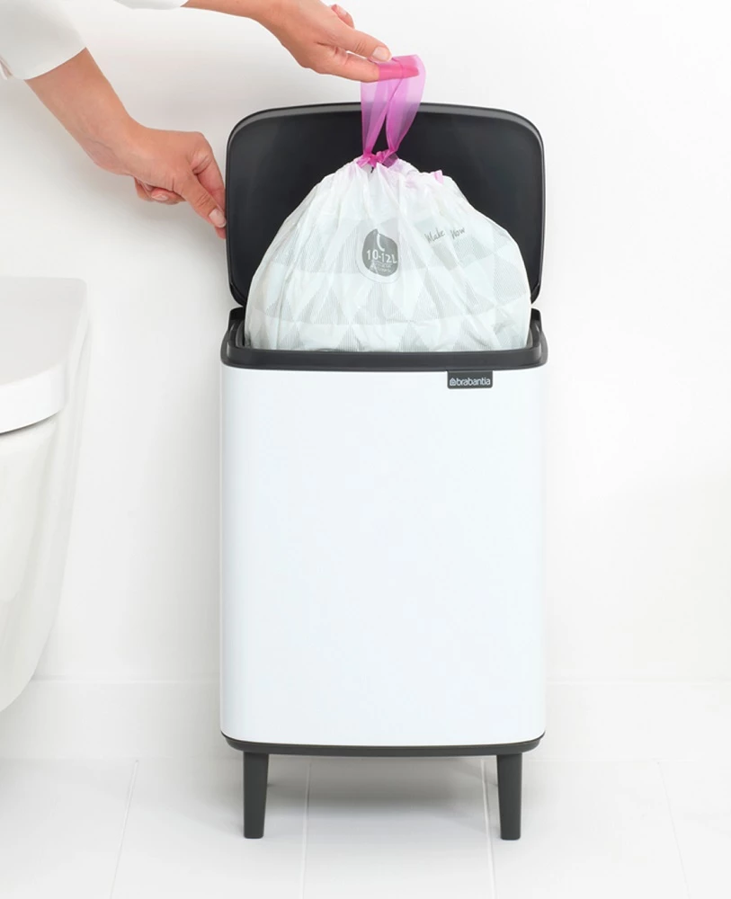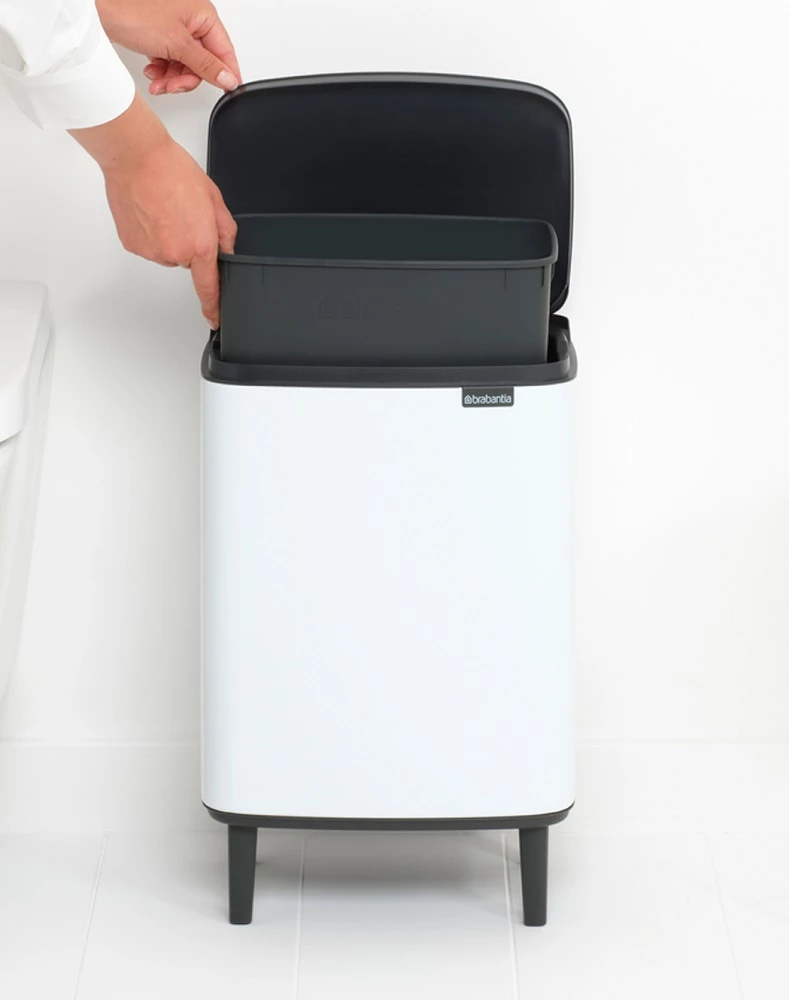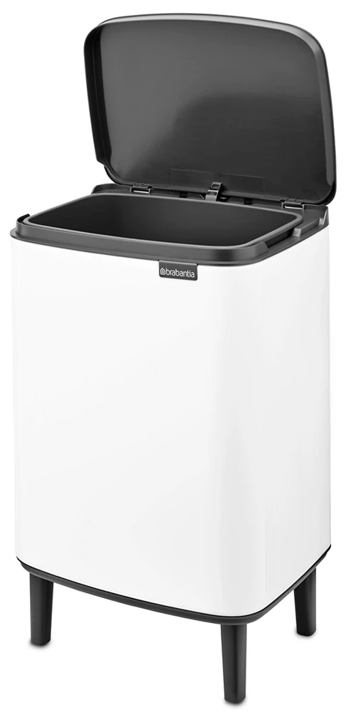 Brabantia Bo Waste Bin Hi hulladékgyűjtő felnyitható, Soft-Close fedéllel, magasított, lábakon álló, műanyag tartály, 12L - C méret, acél, fehér - 227240