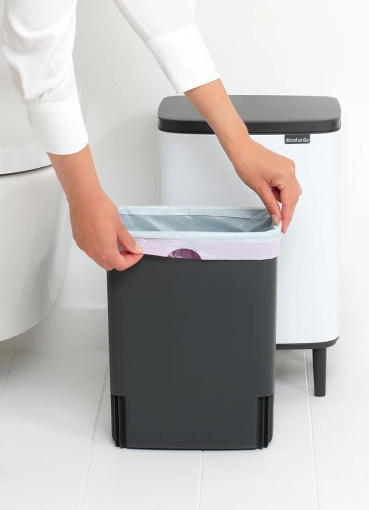 BRABANTIA Bo Waste Bin Hi hulladékgyűjtő felnyitható Soft-Close fedéllel magasított lábakon álló műanyag tartály 12L - C méret acél fehér - 227240