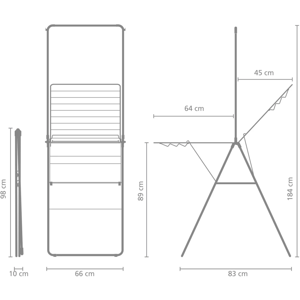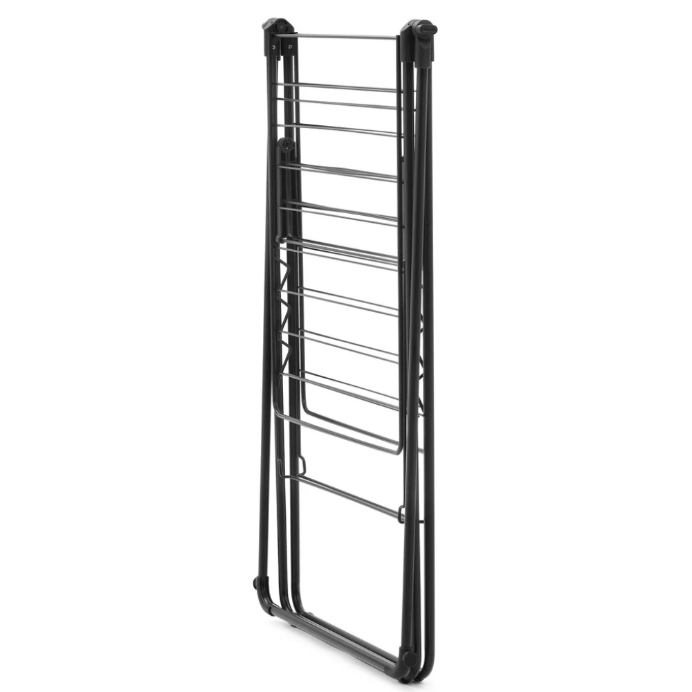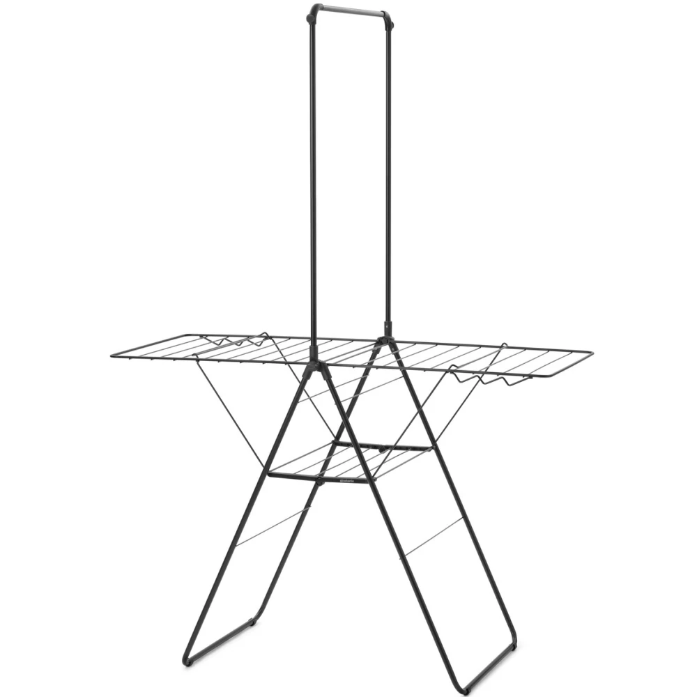Amikor nincs használatban, az állvány egyszerűen összehajtható és a beépített szállítási zár egyben tartja a terméket, így könnyen tárolható és mozgatható. Az állítható szárnymagasság lehetővé teszi, hogy a szárítót az aktuális igényekhez igazítsa.