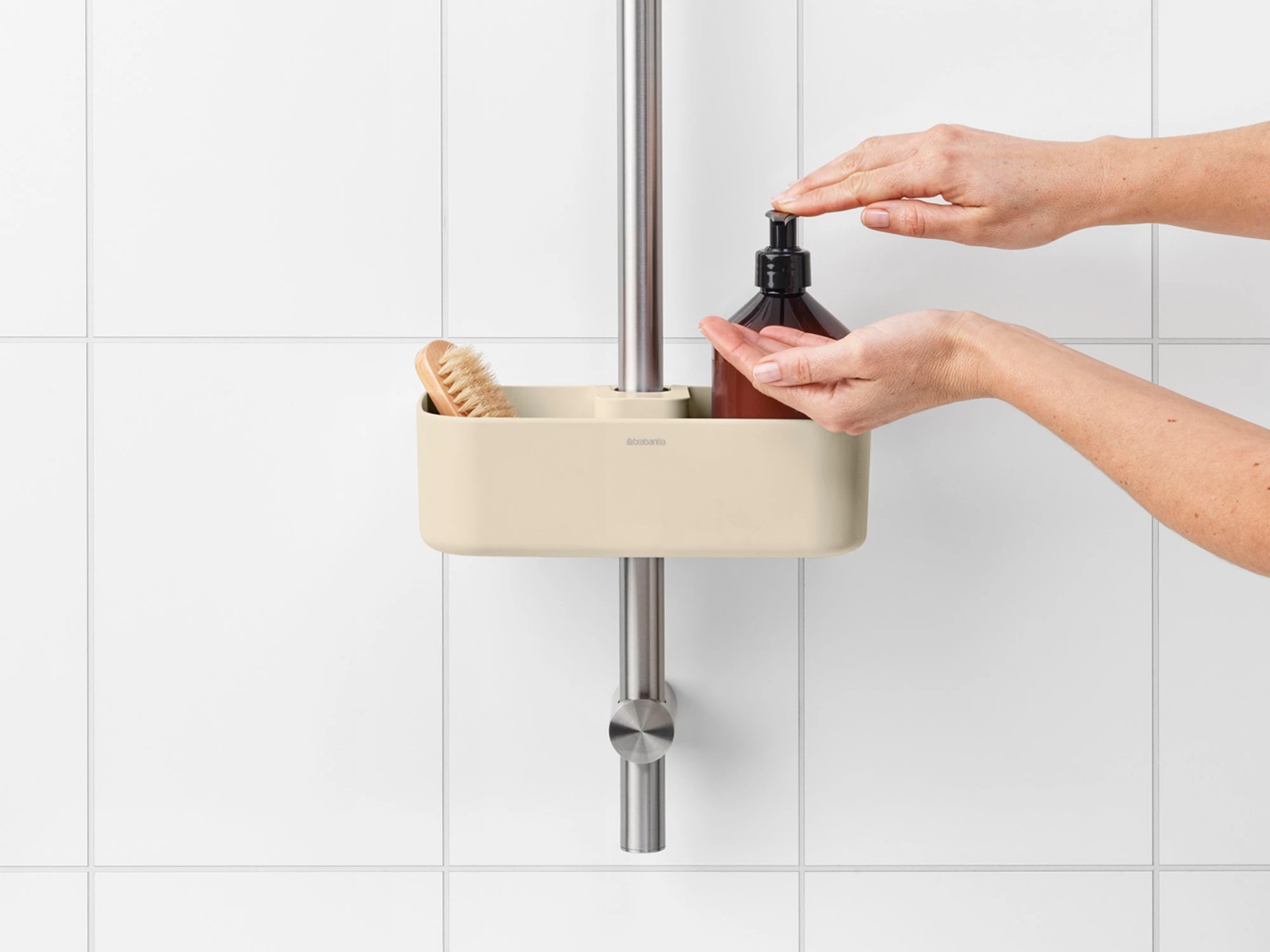 BRABANTIA ReNew Shower Caddy zuhanytartó rúdra szerelhető zuhanypolc tusfürdő tartó kosár műanyag világos bézs - 223464