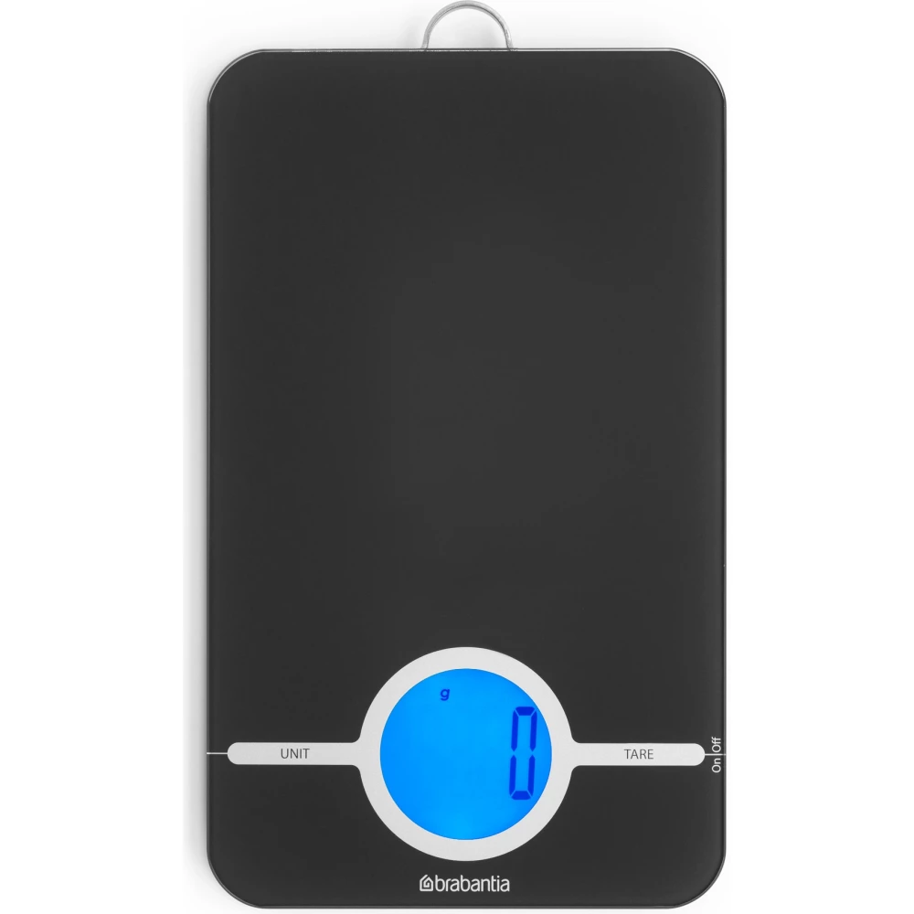 BRABANTIA Tasty+ Measure & Check digitális konyhai mérleg. 5kg teherbírás. 1g pontosság. megvilágított LCD kijelző. elemes. műanyag test. üveg fedlap. sötétszürke - 122644
