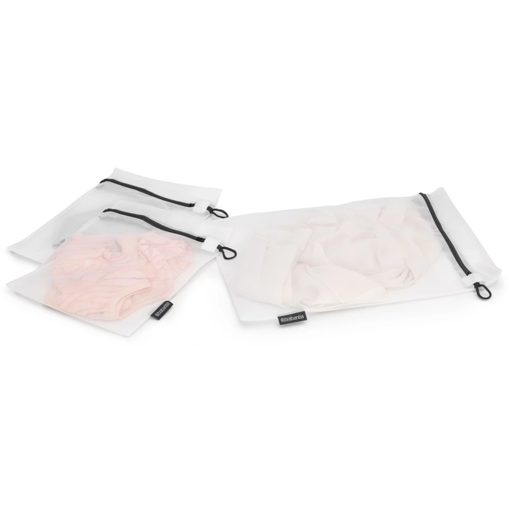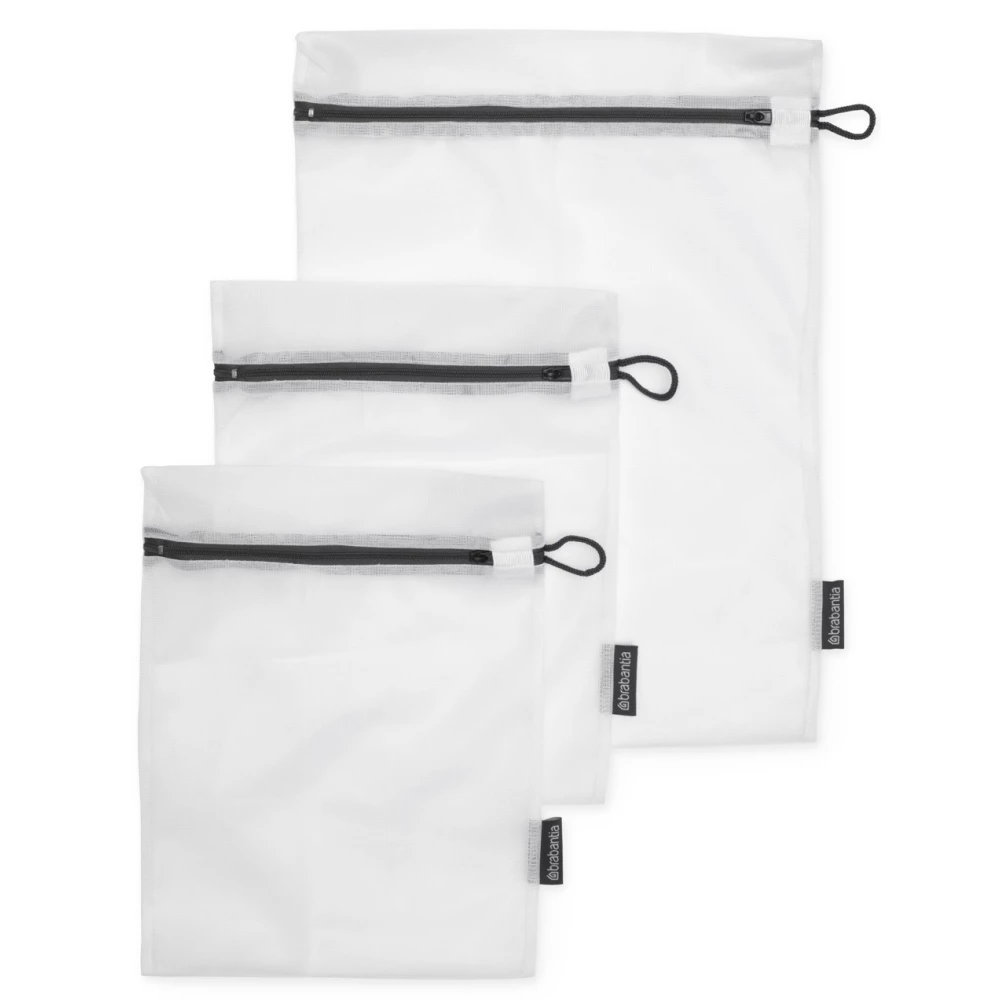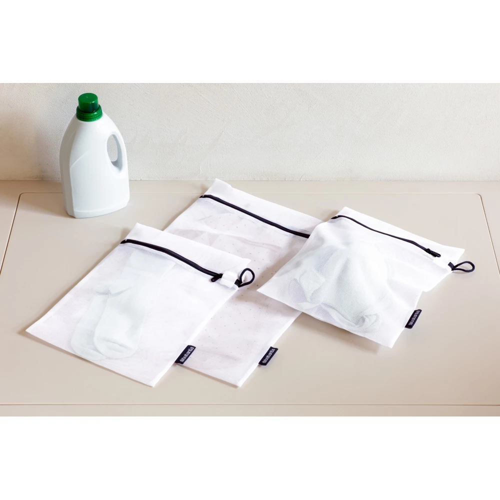 BRABANTIA Wash Bag. 3 db-os mosózsák készlet. 2 db kisméretű 330x250mm és 1db nagyméretű 450x330mm cipzáras zsák. fehér zsák / sötétszürke cipzár - 149221