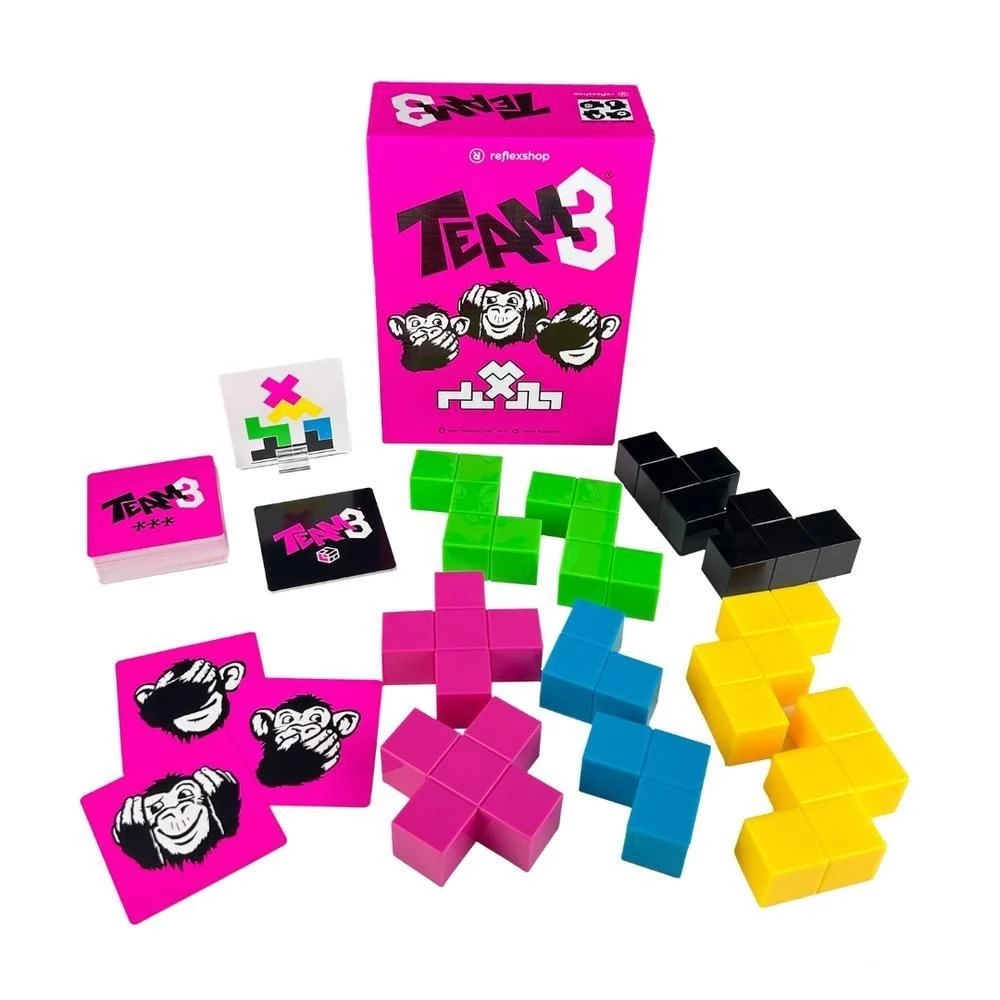 A TEAM3-ban össze kell fognotok és közösen kell épületeket felépítenetek, de hatalmas kavarodás van. Aki ismeri a tervet, csak mutogatni tud, ám aki épít, az ebből nem láthat semmit. A harmadik áll középen és igyekszik kézzel, lábbal, na meg szájjal magyarázni a másik kettőnek. Fogjatok össze, értsétek meg egymást félszavakból vagy éppen egy grimaszból is, és húzzatok fel minél több felhőkarcolót!