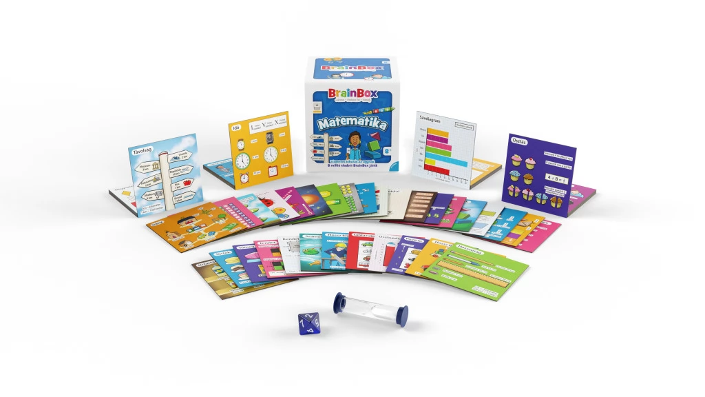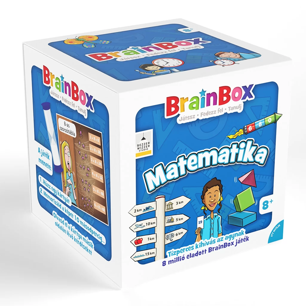 A BrainBox Matematika izgalmas kihívás az agynak! Gyorsan tanulsz? Lássuk, hogy boldogulsz az matekkal! A BrainBox Matematika remek agytorna és szórakozás, egy vagy akár több játékos részére! Húzz egy kártyát, tanulmányozd, és jegyezz meg minél több információt 10 másodperc alatt. Ezután fordítsd le a kártyát, dobj a kockával, és válaszolj helyesen a kidobott számmal jelölt kérdésre. Ne húzd ám az időt, hiszen a homokórán gyorsan leperegnek a szemek! A válaszokat a kártyán ellenőrizheted. Ha jó megfigyelő vagy, és jól pörög az agyad a matekban, akkor a legtöbb kártya nálad landol! A BrainBox a gyors megfigyelések és a vizuálismemória-kérdések családi játéka.