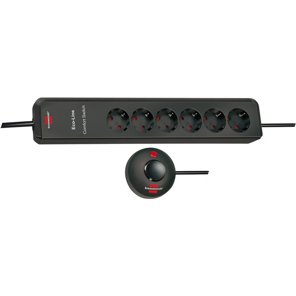 BRENNENSTUHL Eco-Line Comfort Switch Elosztó 6 aljzat 2m fekete kapcsolós