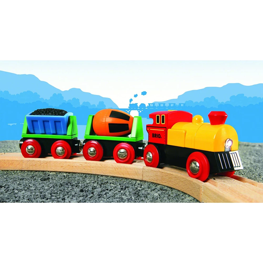 Különleges fa mozdony 2 darab vagonnal és beépített, elemes működésű motorral.