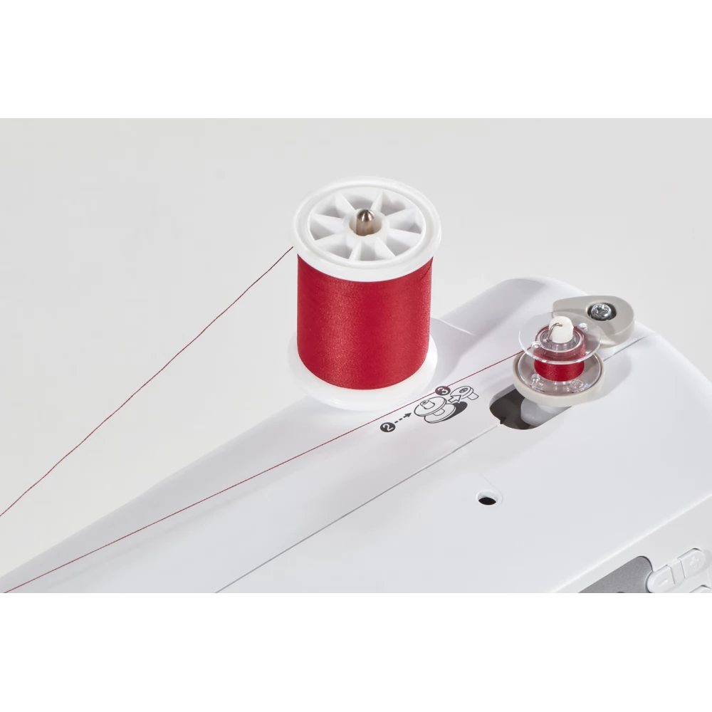 - Félautomata tűbefűző eszköz vezesse át a cérnát a speciális eszközön (kövesse a gépen található lépéseket), és a tű könnyedén befűzhető