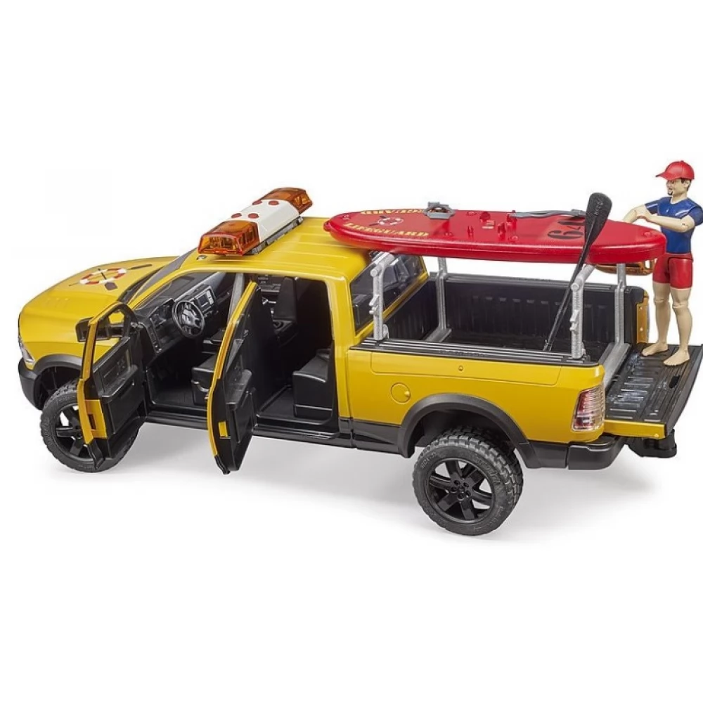 A vízimentők izgalmas életébe nyerhet bepillantást gyermeke ennek a vagány Dodge RAM 2500 pick up teherautónak a volánja mögött, amelyet a Bruder kiváló részletességgel, 1/16 méretarányban készített.