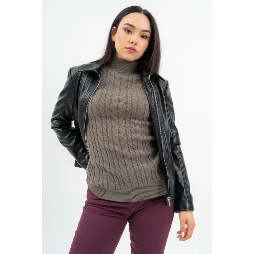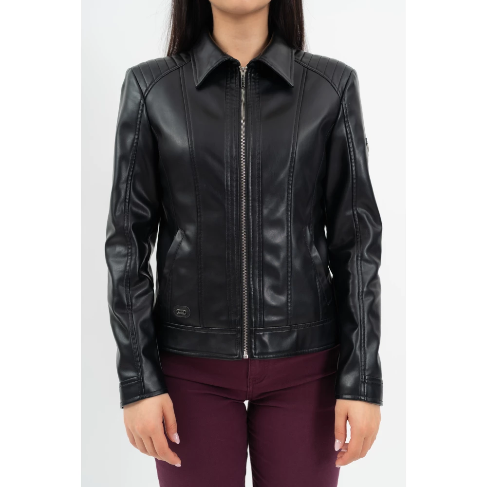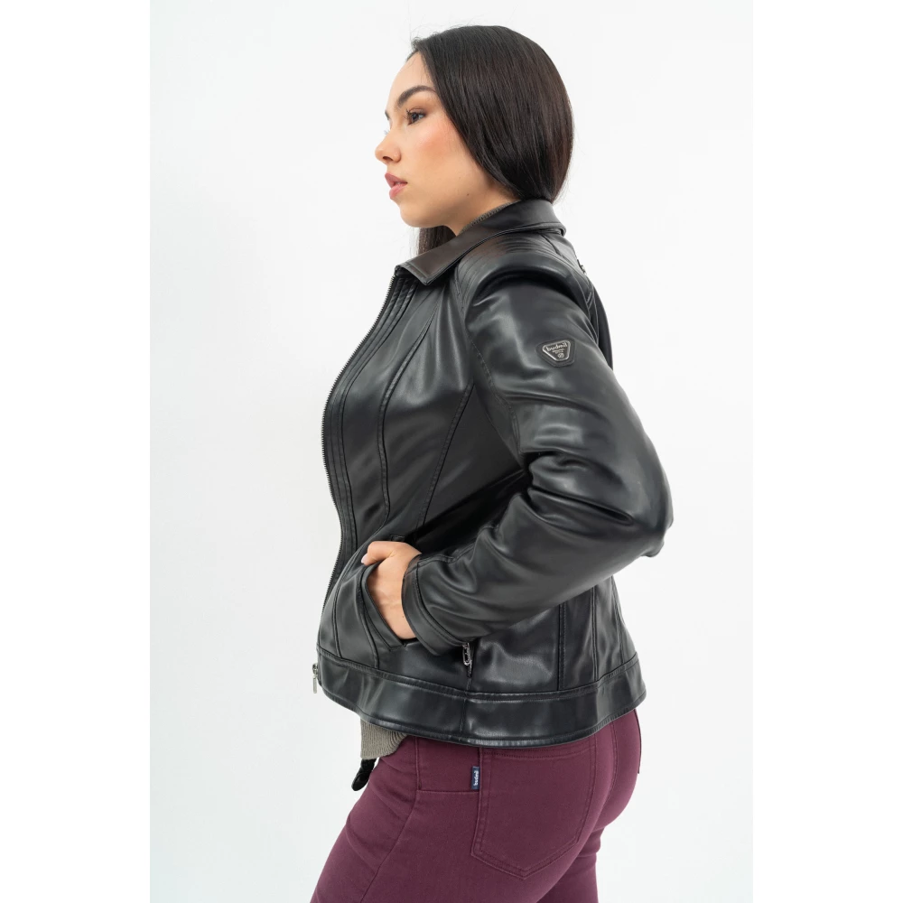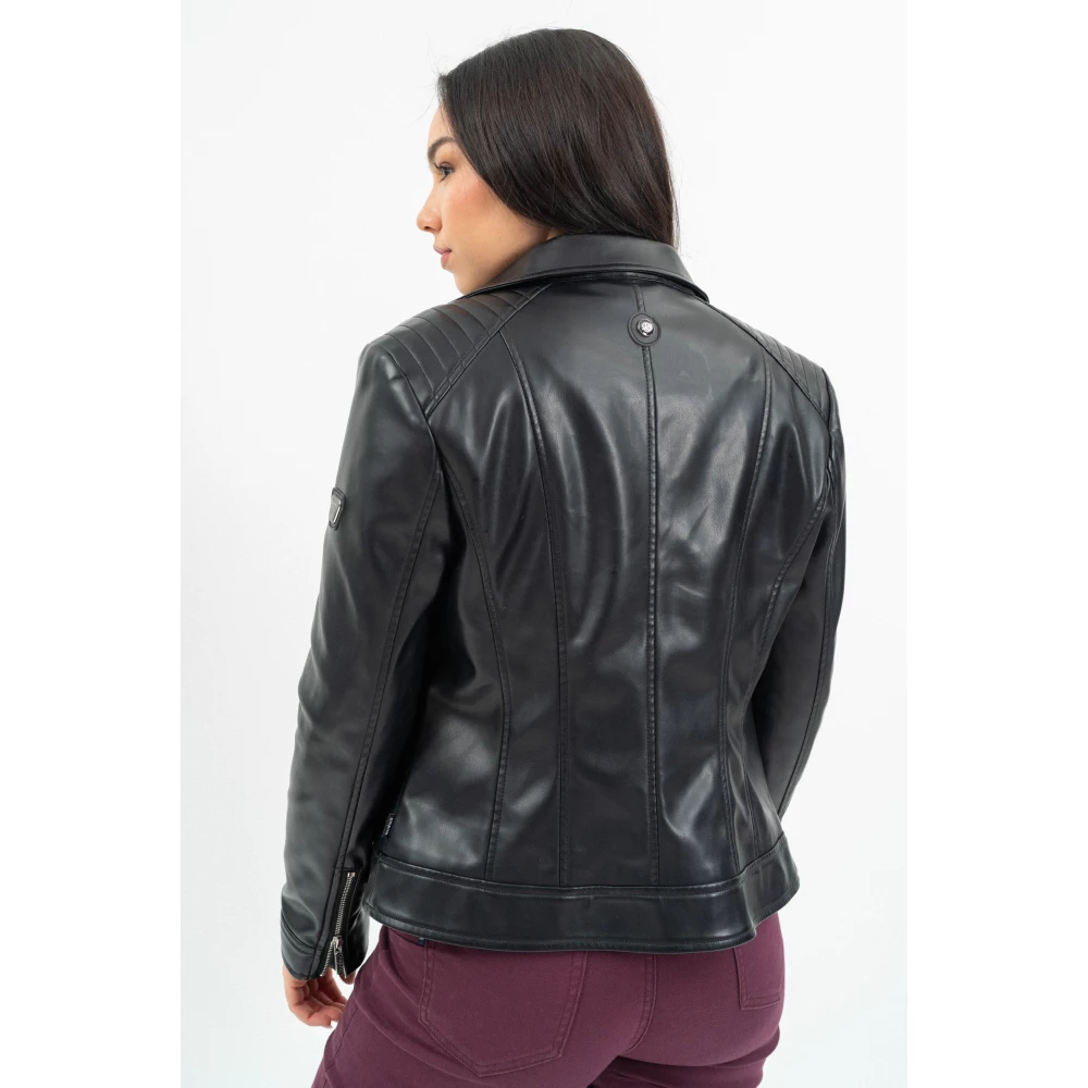 női műbőr dzseki karcsúsított fazonfém címkével díszítve