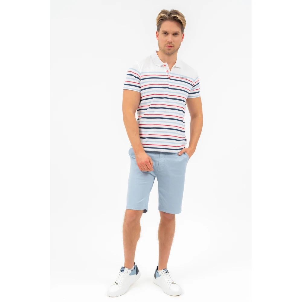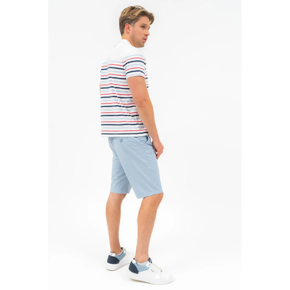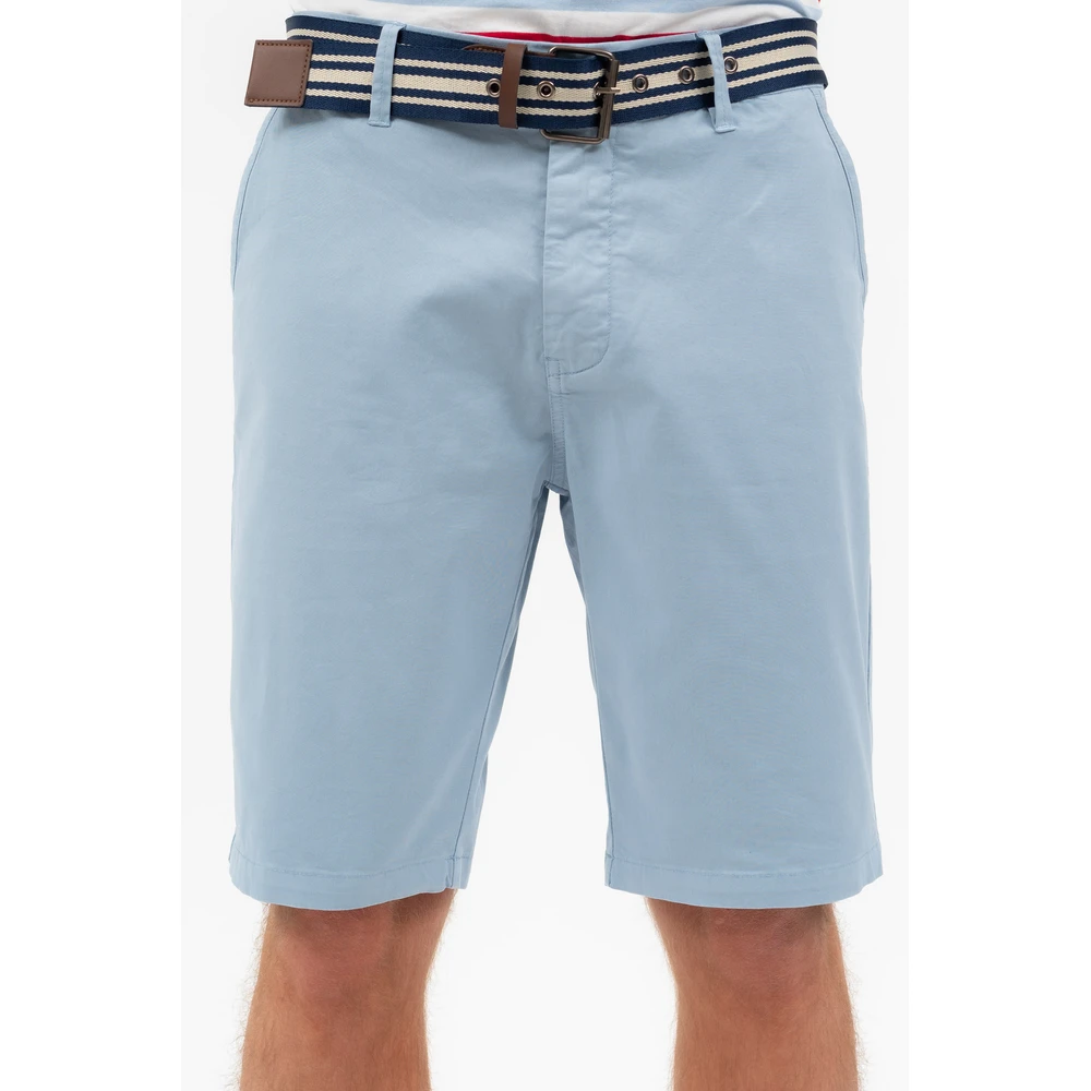férfi bermuda nadrág szövött anyagból derekában övvel fémcímkével díszítve