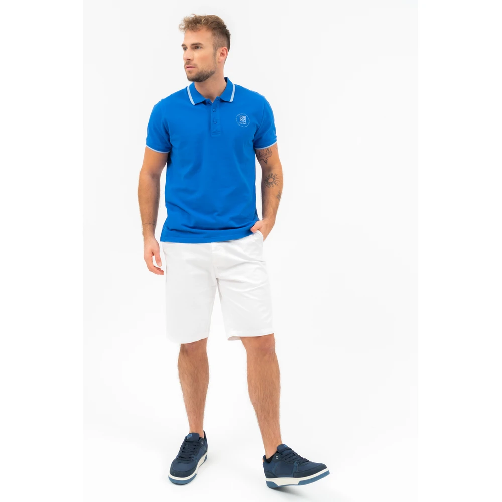 férfi bermuda nadrág szövött anyagból derekában övvel fémcímkével díszítve