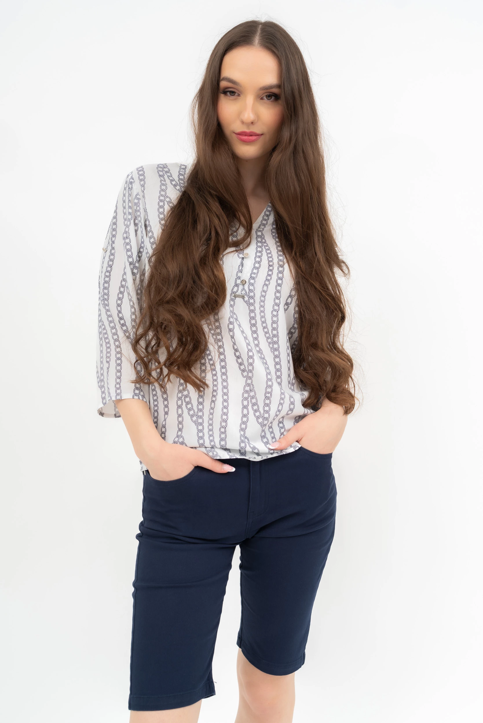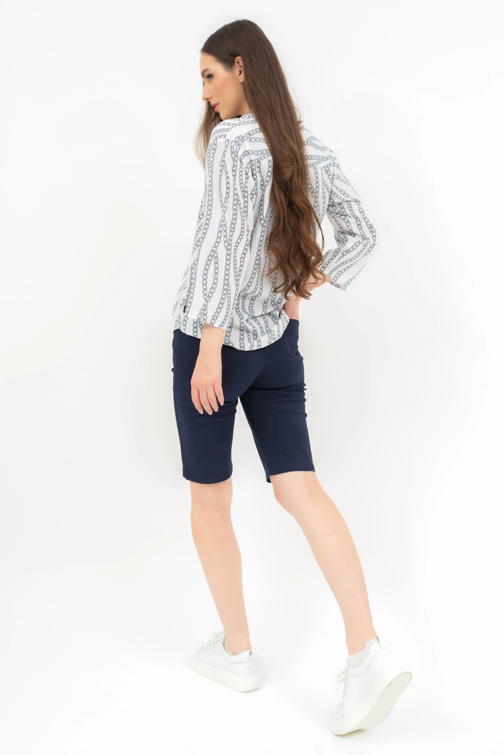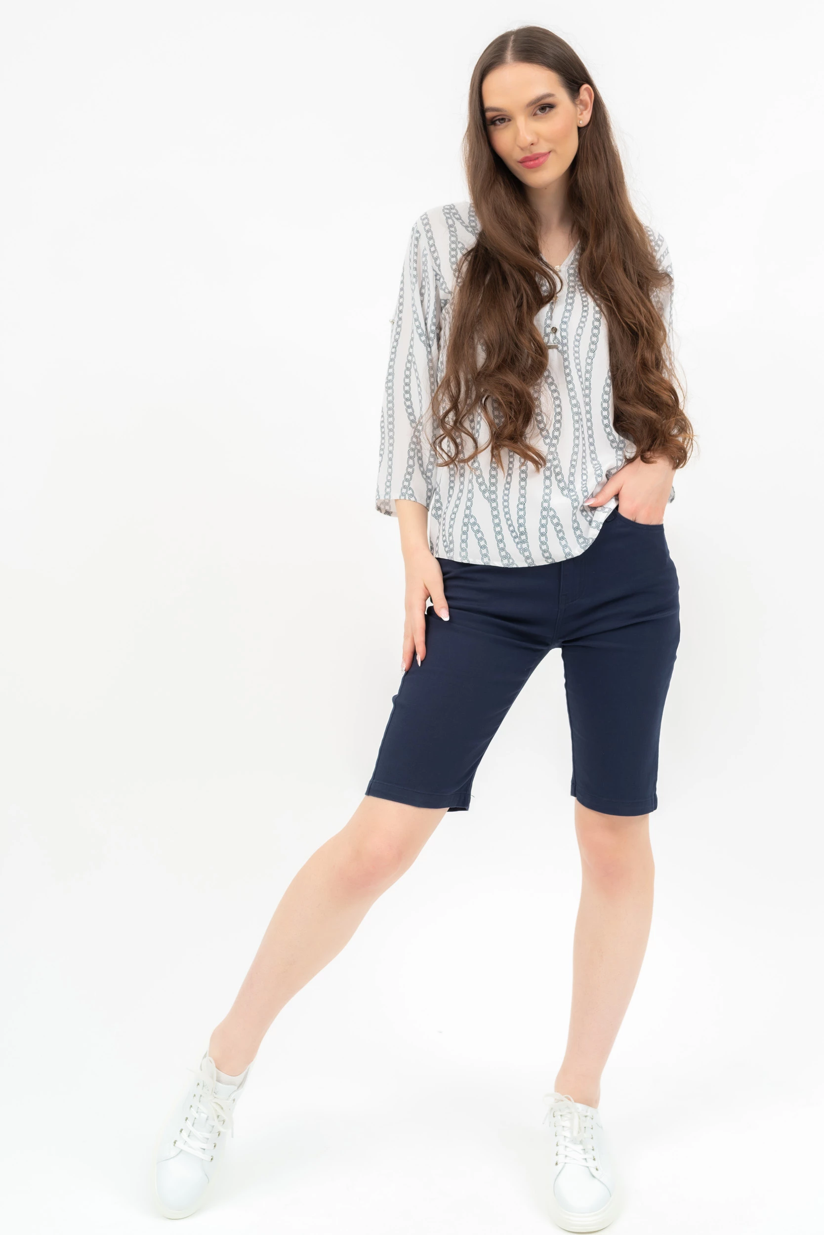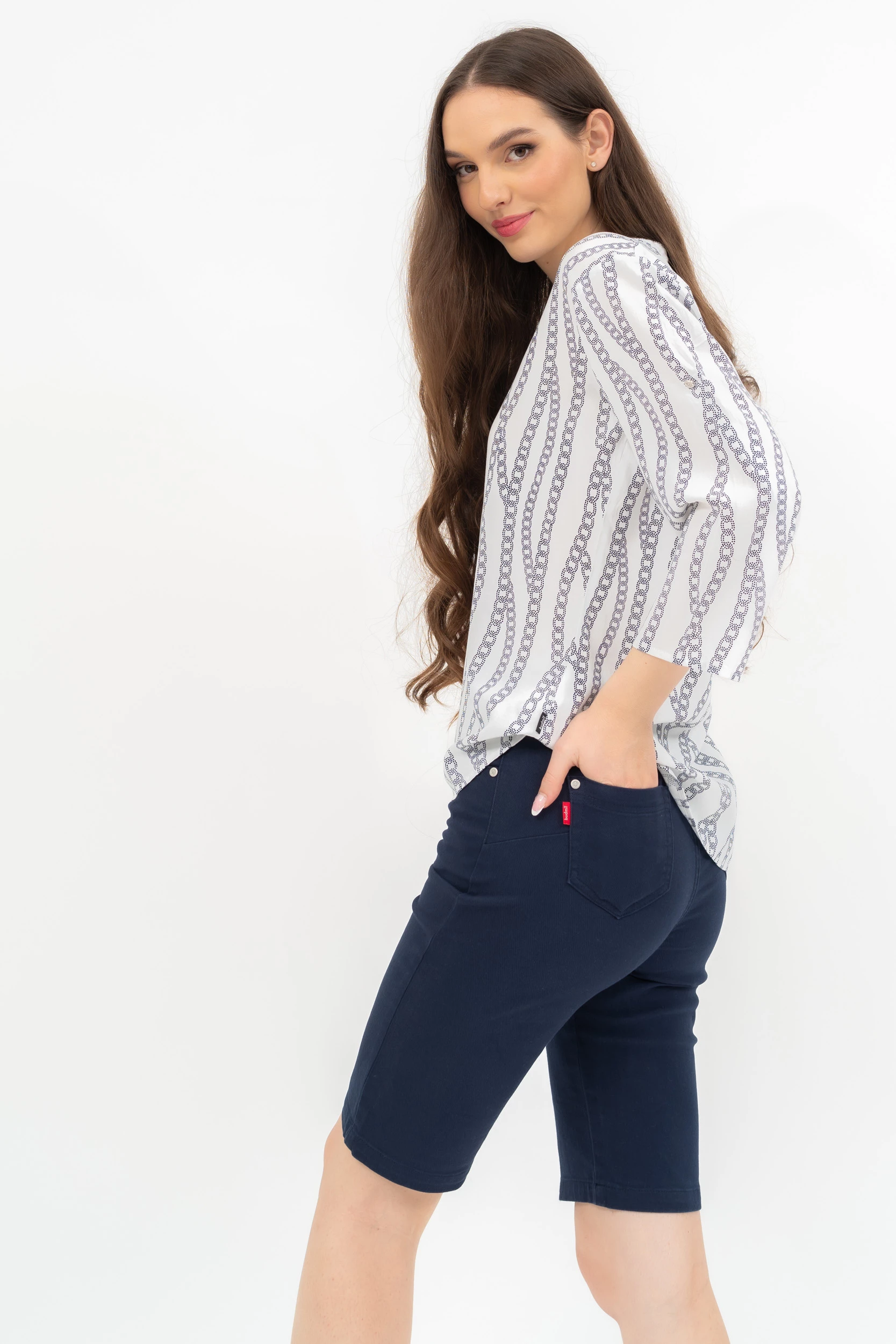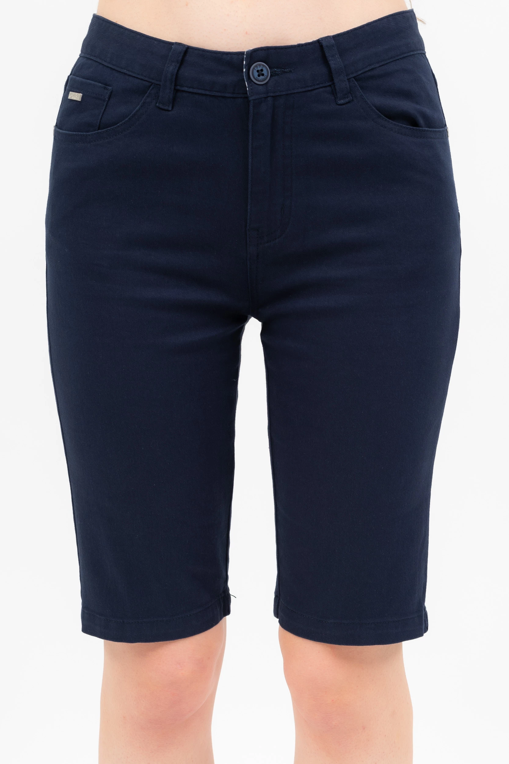női bermuda nadrág szövött anyagból push-up fazonnormál derékmagasság fémcímkével díszítve