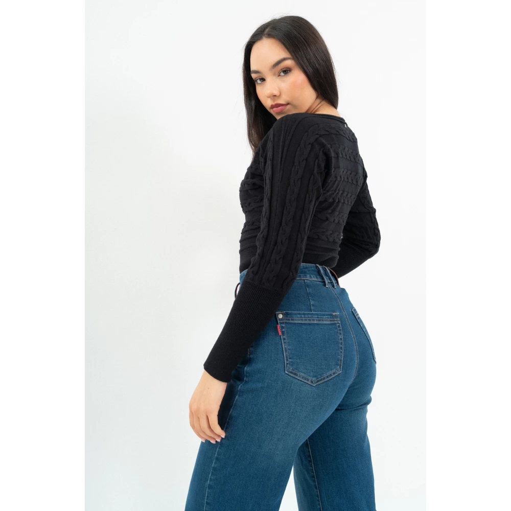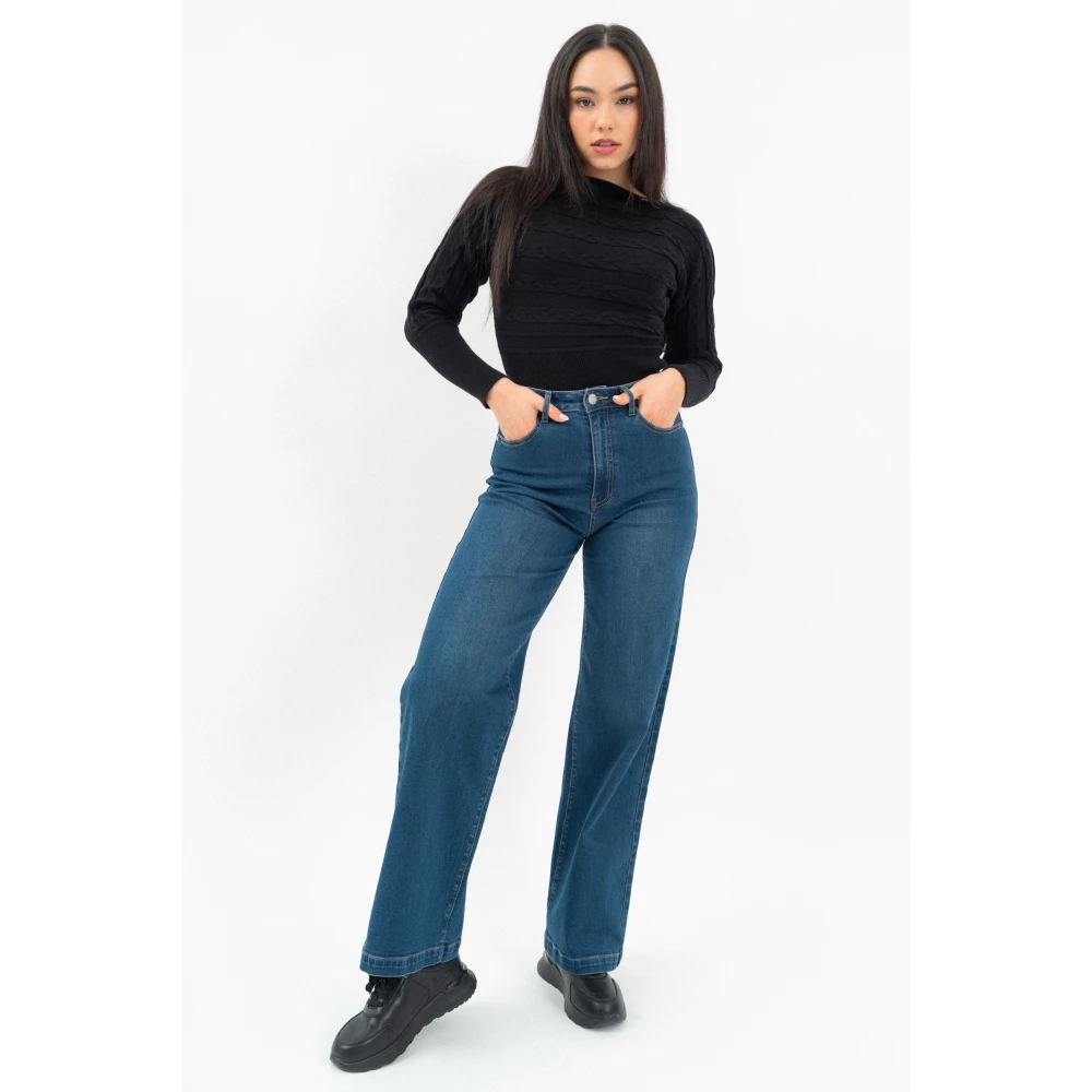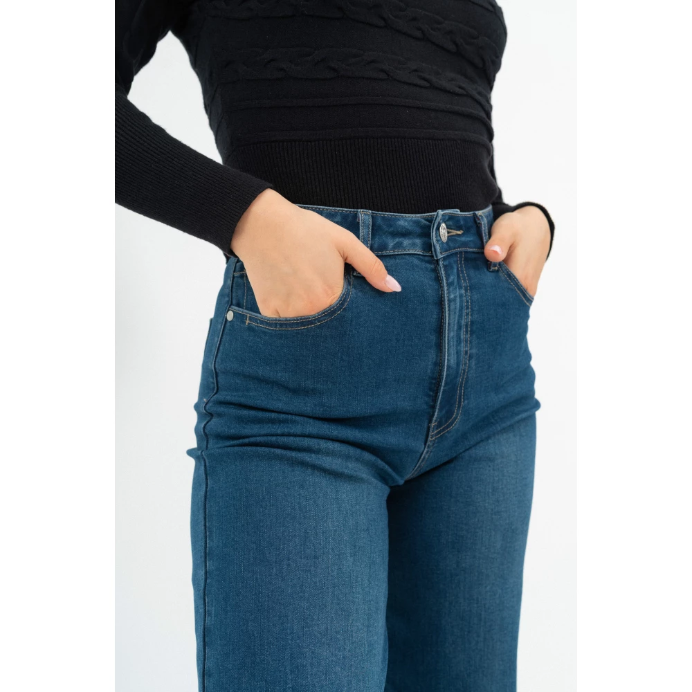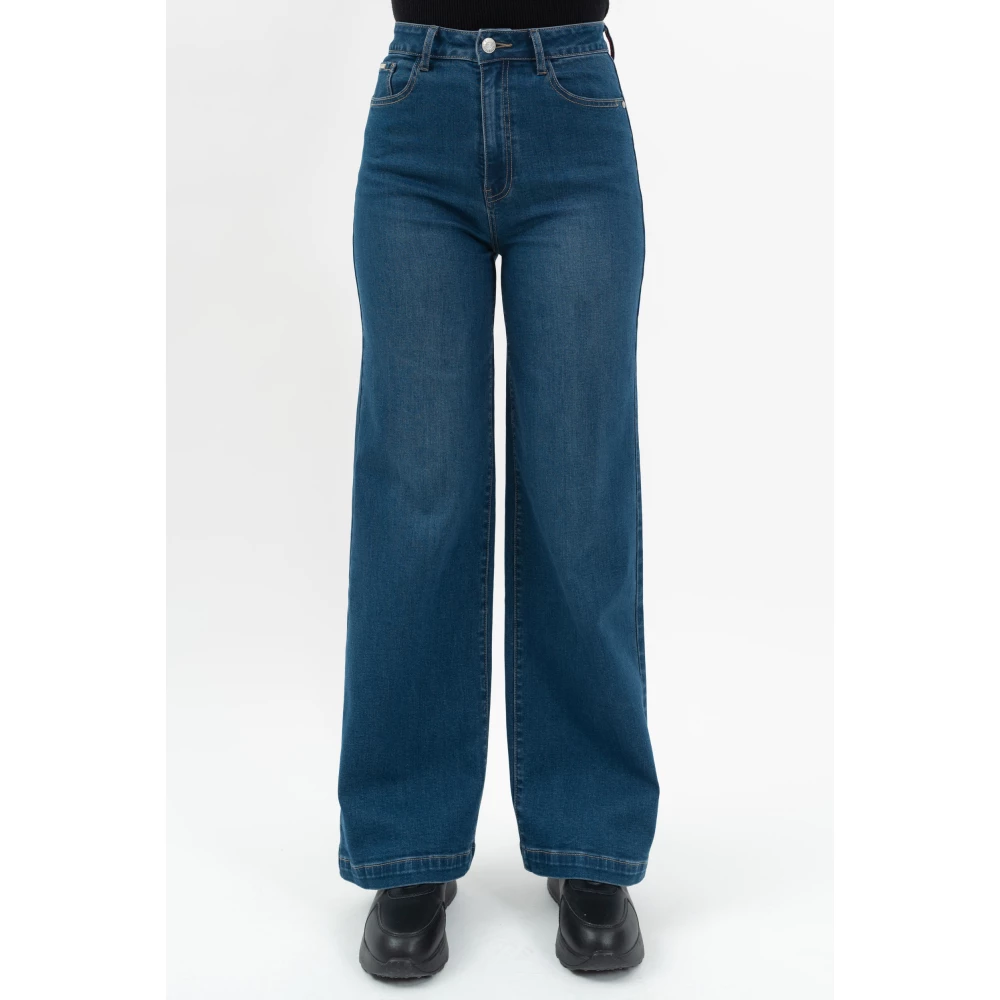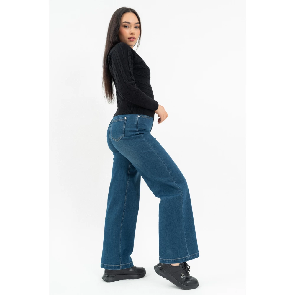 női bő szárú farmernadrág dereka magasítottfém és műbőr címkével díszítve