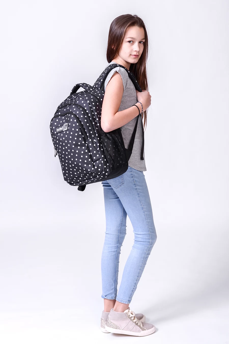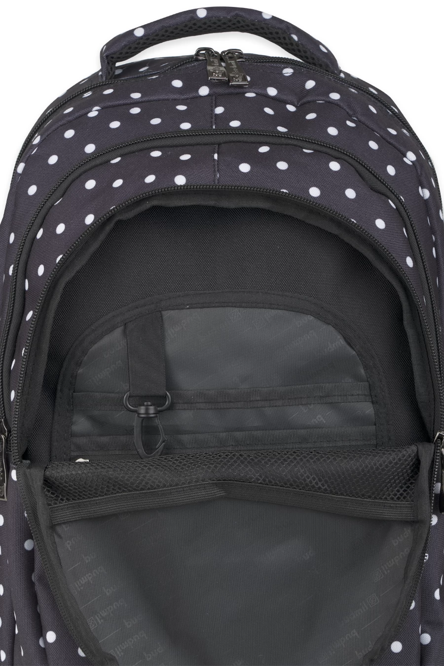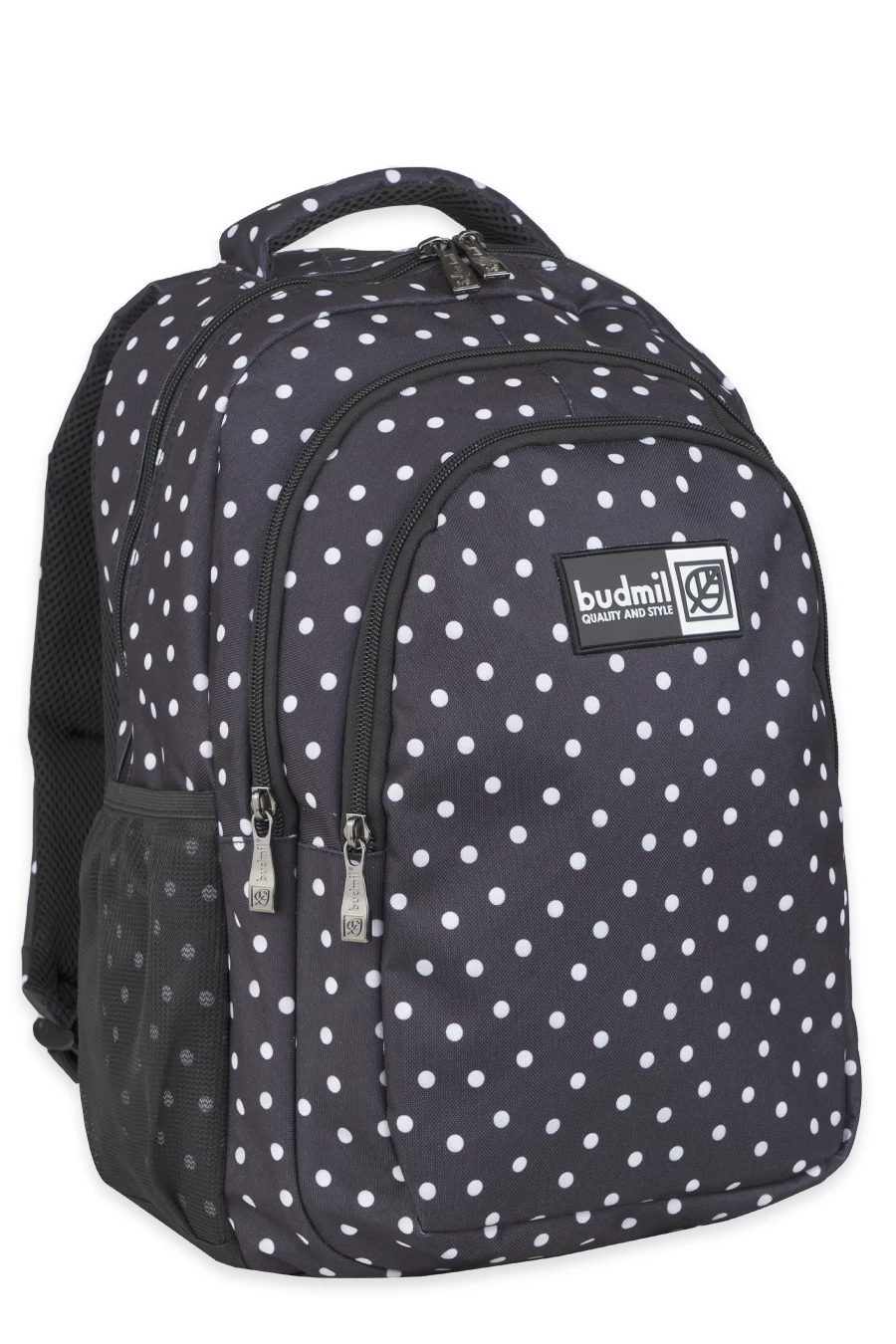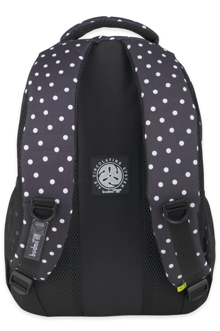 BUDMIL Hátitáska ovális fekete - fehér pöttyös v2