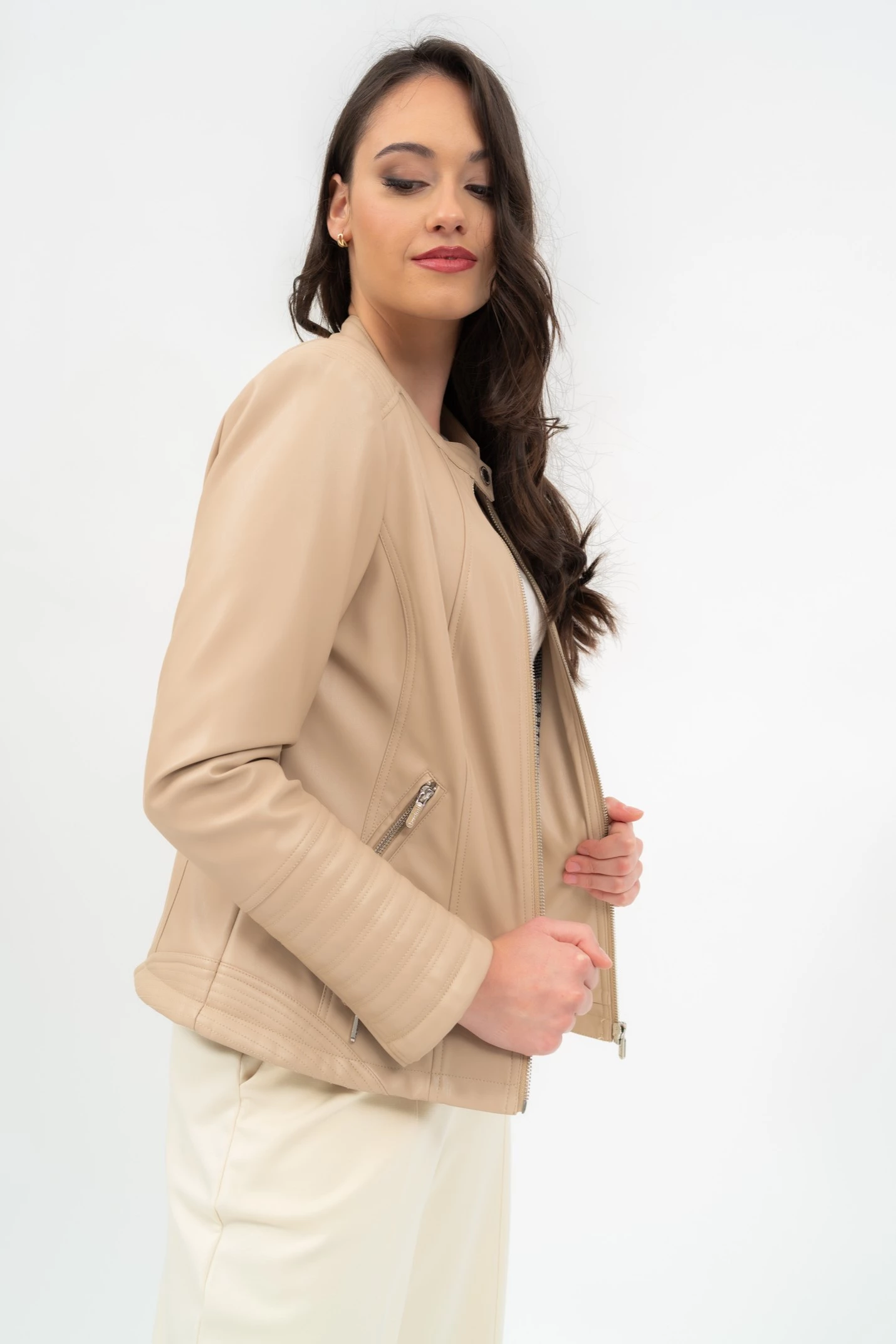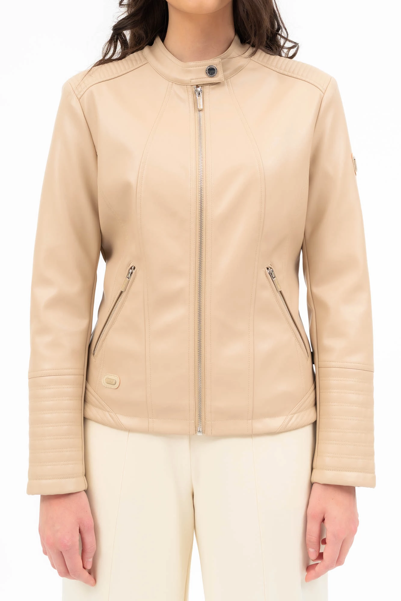 női műbőr dzseki karcsúsított fazonfém címkével díszítve